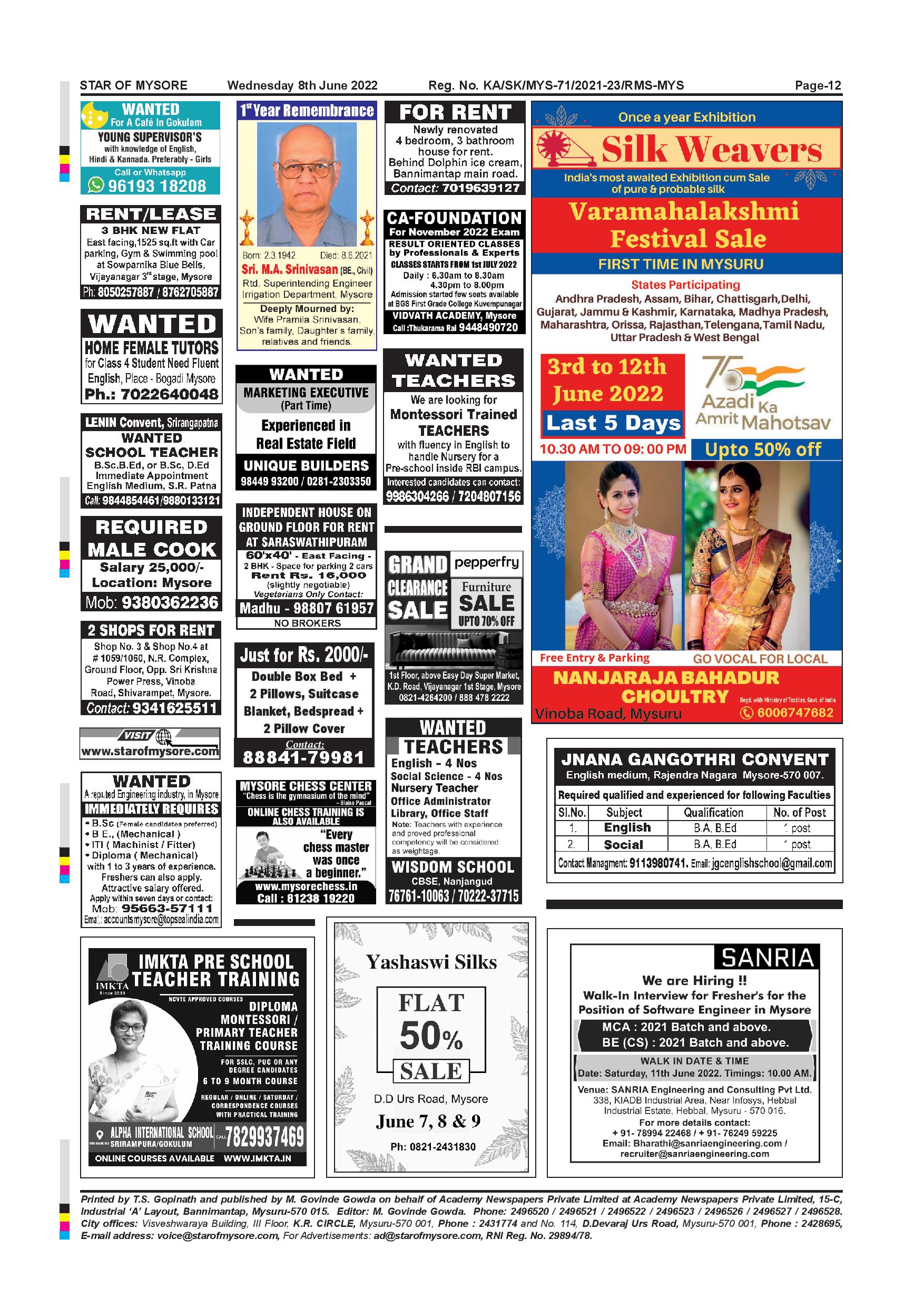Star of Mysore Page: 12 June 08, 2022 << First << 12 >> Last >> Page 1Page 2Page 3Page 4Page 5Page 6Page 7Page 8Page 9Page 10Page 11Page 12 × Star of Mysore << First << 12 >> Last >> Page-001Page-002Page-003Page-004Page-005Page-006Page-007Page-008Page-009Page-010Page-011Page-012 Page-012