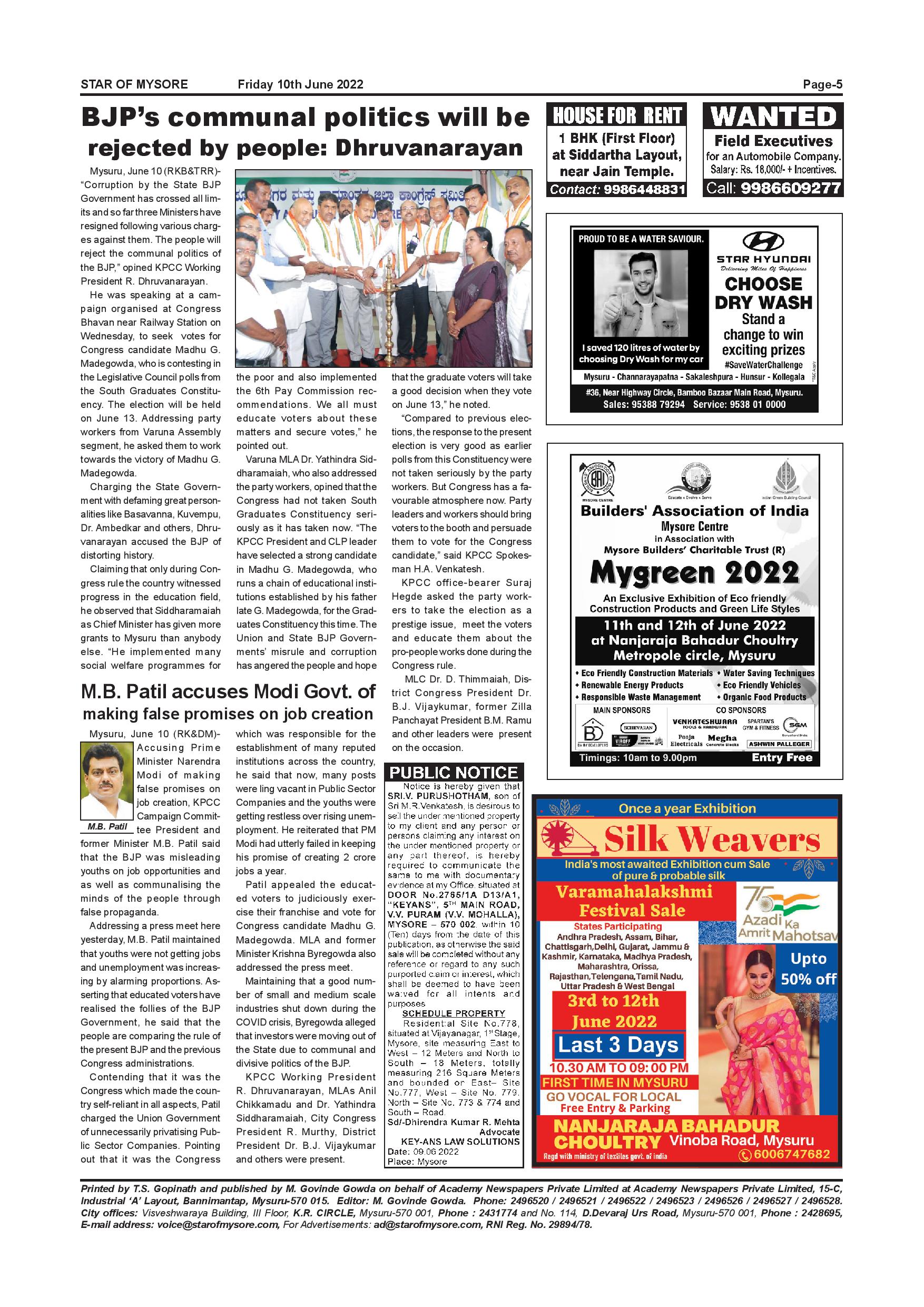 Star of Mysore Page: 5 June 10, 2022 << First << 5 >> Last >> Page 1Page 2Page 3Page 4Page 5Page 6Page 7Page 8Page 9Page 10Page 11Page 12 × Star of Mysore << First << 5 >> Last >> Page-001Page-002Page-003Page-004Page-005Page-006Page-007Page-008Page-009Page-010Page-011Page-012 Page-005