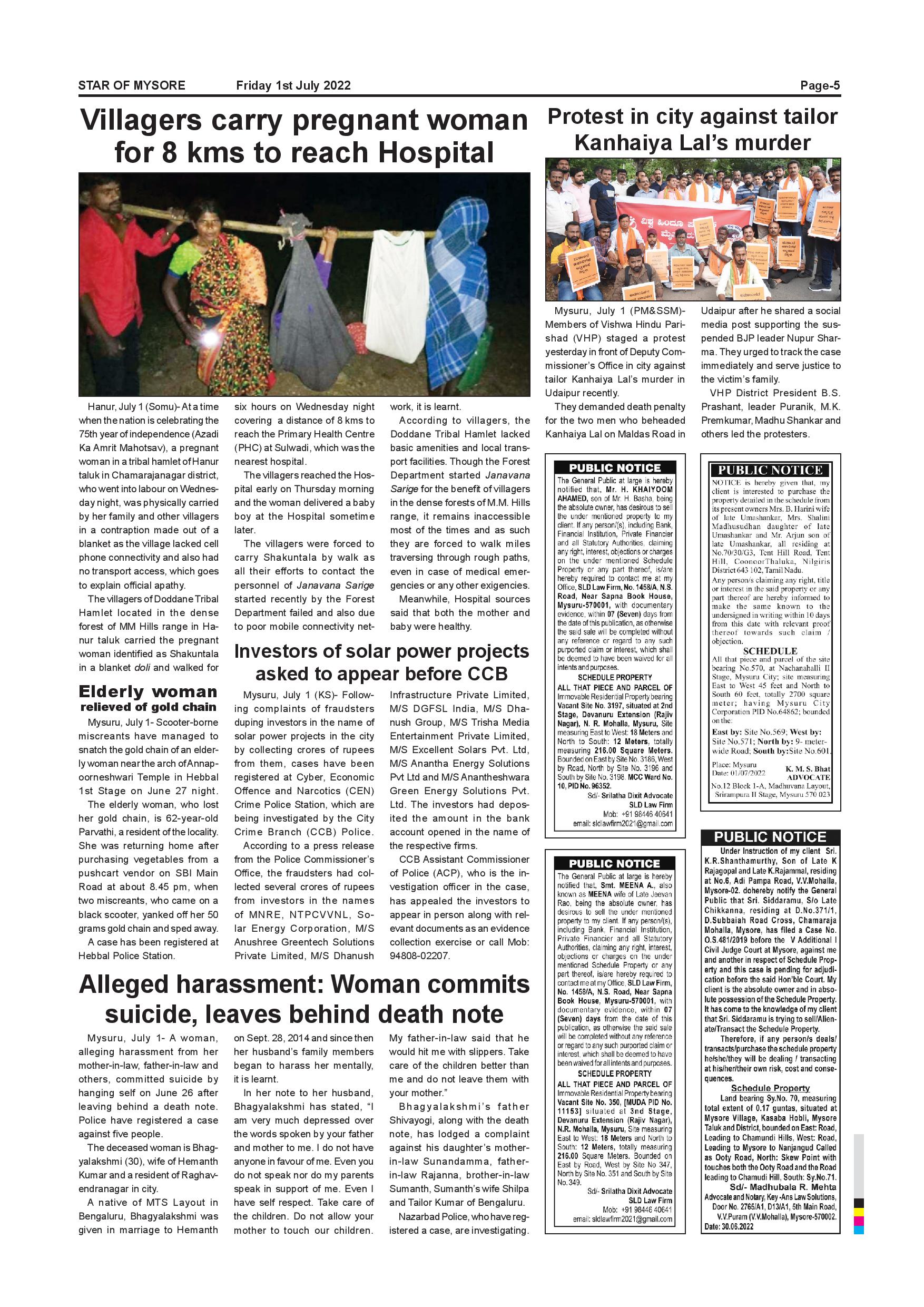 Star of Mysore Page: 5 July 01, 2022 << First << 5 >> Last >> Page 1Page 2Page 3Page 4Page 5Page 6Page 7Page 8Page 9Page 10Page 11Page 12 × Star of Mysore << First << 5 >> Last >> SOM-page-001SOM-page-002SOM-page-003SOM-page-004SOM-page-005SOM-page-006SOM-page-007SOM-page-008SOM-page-009SOM-page-010SOM-page-011SOM-page-012 SOM-page-005