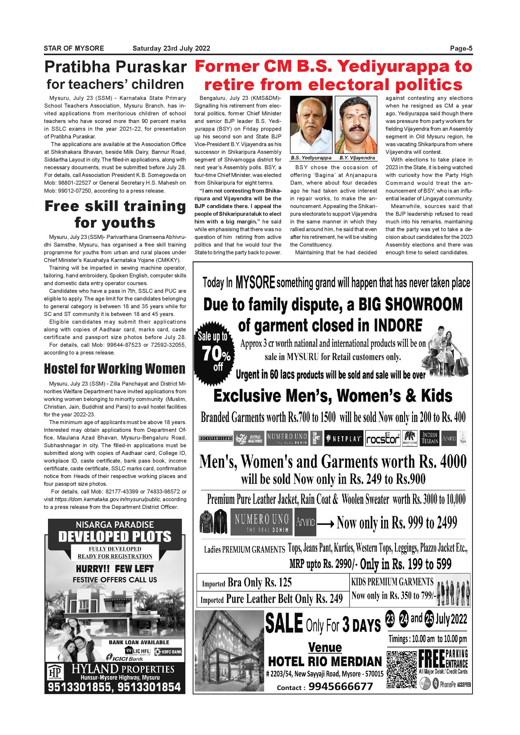 Star of Mysore Page: 5 July 23, 2022 << First << 5 >> Last >> Page 1Page 2Page 3Page 4Page 5Page 6Page 7Page 8Page 9Page 10Page 11Page 12 × Star of Mysore << First << 5 >> Last >> Page-001Page-002Page-003Page-004Page-005Page-006Page-007Page-008Page-009Page-010Page-011Page-012 Page-005