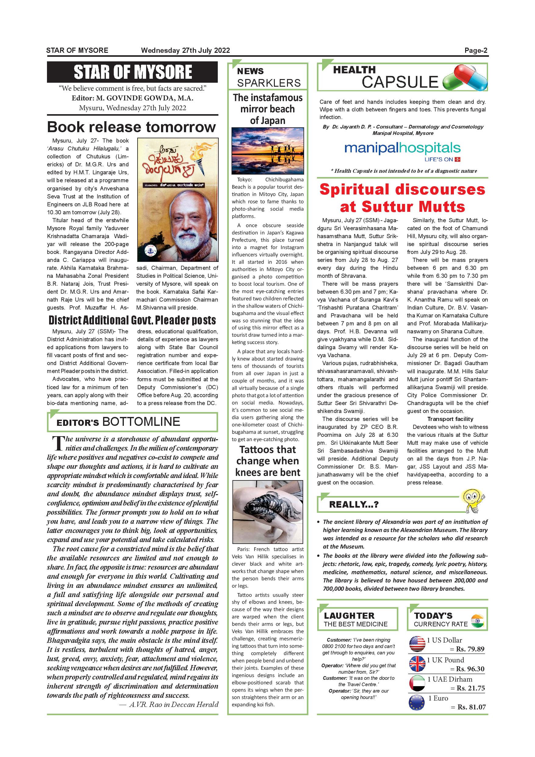 Star of Mysore Page: 2 July 27, 2022 << First << 2 >> Last >> Page 1Page 2Page 3Page 4Page 5Page 6Page 7Page 8Page 9Page 10Page 11Page 12 × Star of Mysore << First << 2 >> Last >> Page-001Page-002Page-003Page-004Page-005Page-006Page-007Page-008Page-009Page-010Page-011Page-012 Page-002