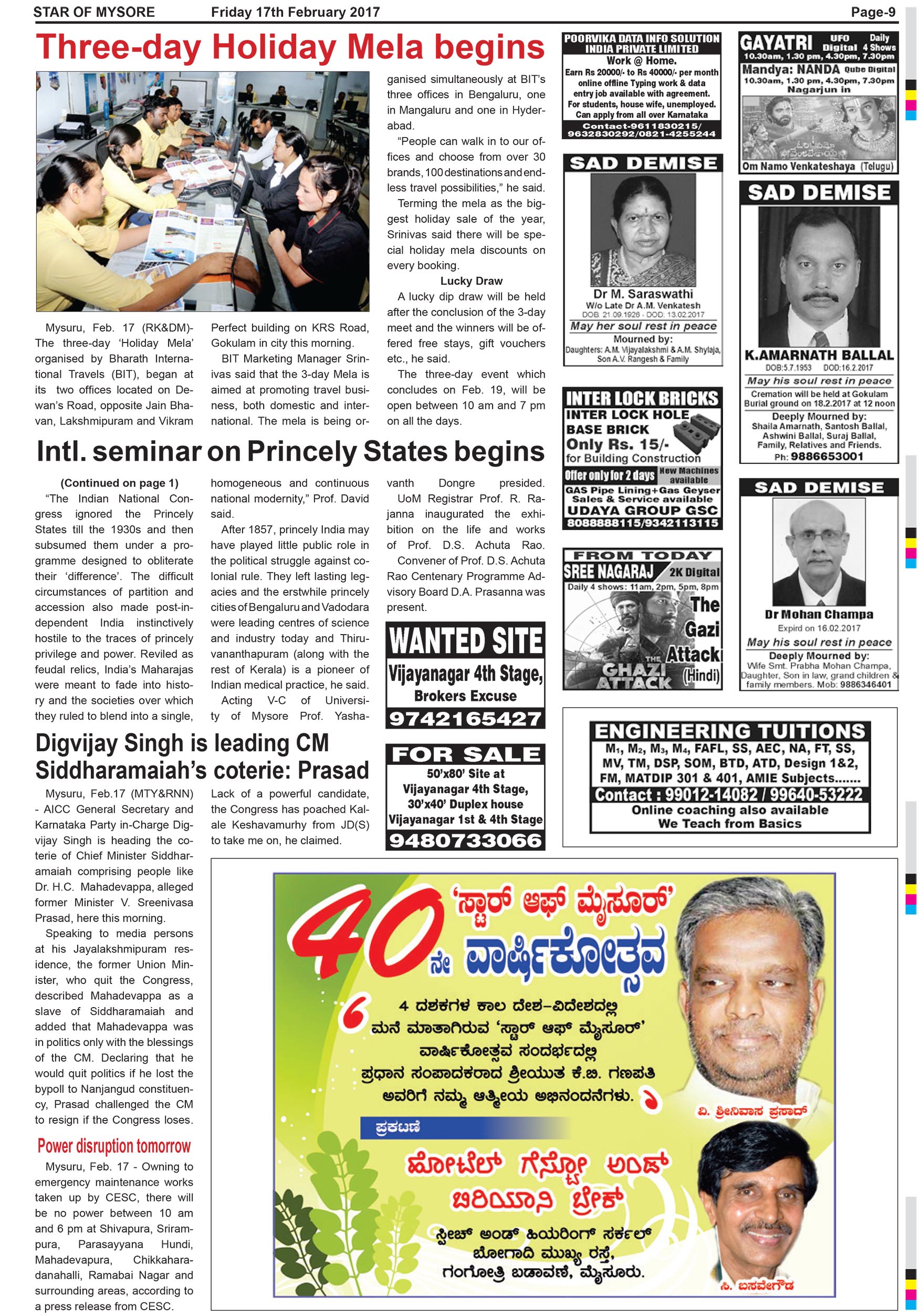 Star of Mysore Page: 9 February 17, 2017 << First << 9 >> Last >> Page 1Page 2Page 3Page 4Page 5Page 6Page 7Page 8Page 9Page 10Page 11Page 12Page 13Page 14Page 15Page 16 × Star of Mysore << First << 9 >> Last >> Page 1Page 2Page 3Page 4Page 5Page 6Page 7Page 8Page 9Page 10Page 11Page 12Page 13Page 14Page 15Page 16 Page 9