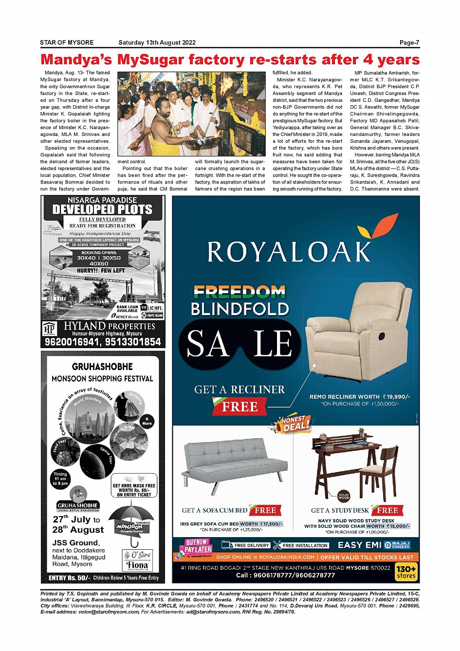 Star of Mysore Page: 7 August 13, 2022 << First << 7 >> Last >> Page 1Page 2Page 3Page 4Page 5Page 6Page 7Page 8Page 9Page 10Page 11Page 12Page 13Page 14Page 15Page 16 × Star of Mysore << First << 7 >> Last >> Page-001Page-002Page-003Page-004Page-005Page-006Page-007Page-008Page-009Page-010Page-011Page-012Page-013Page-014Page-015Page-016 Page-007