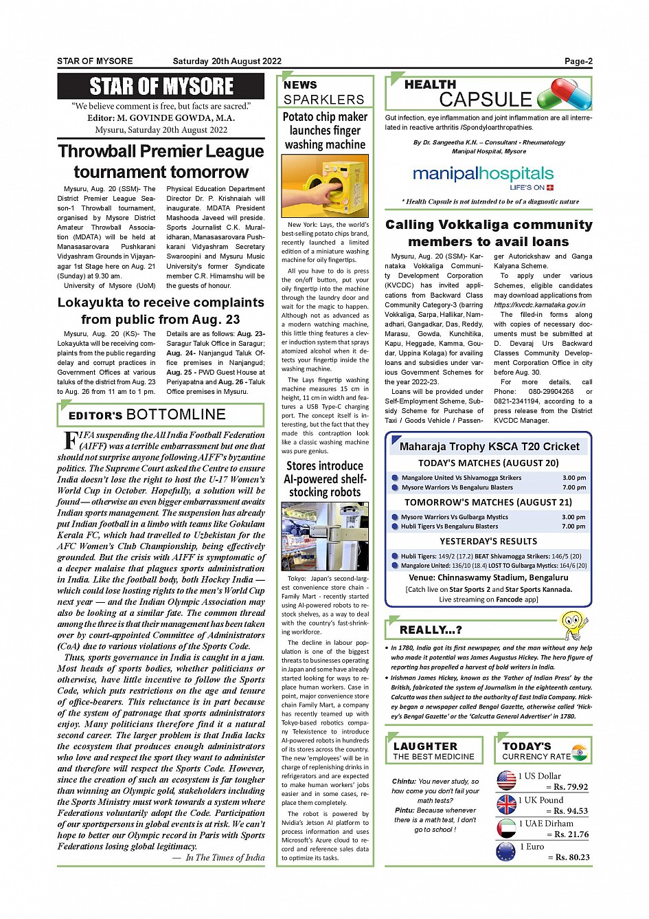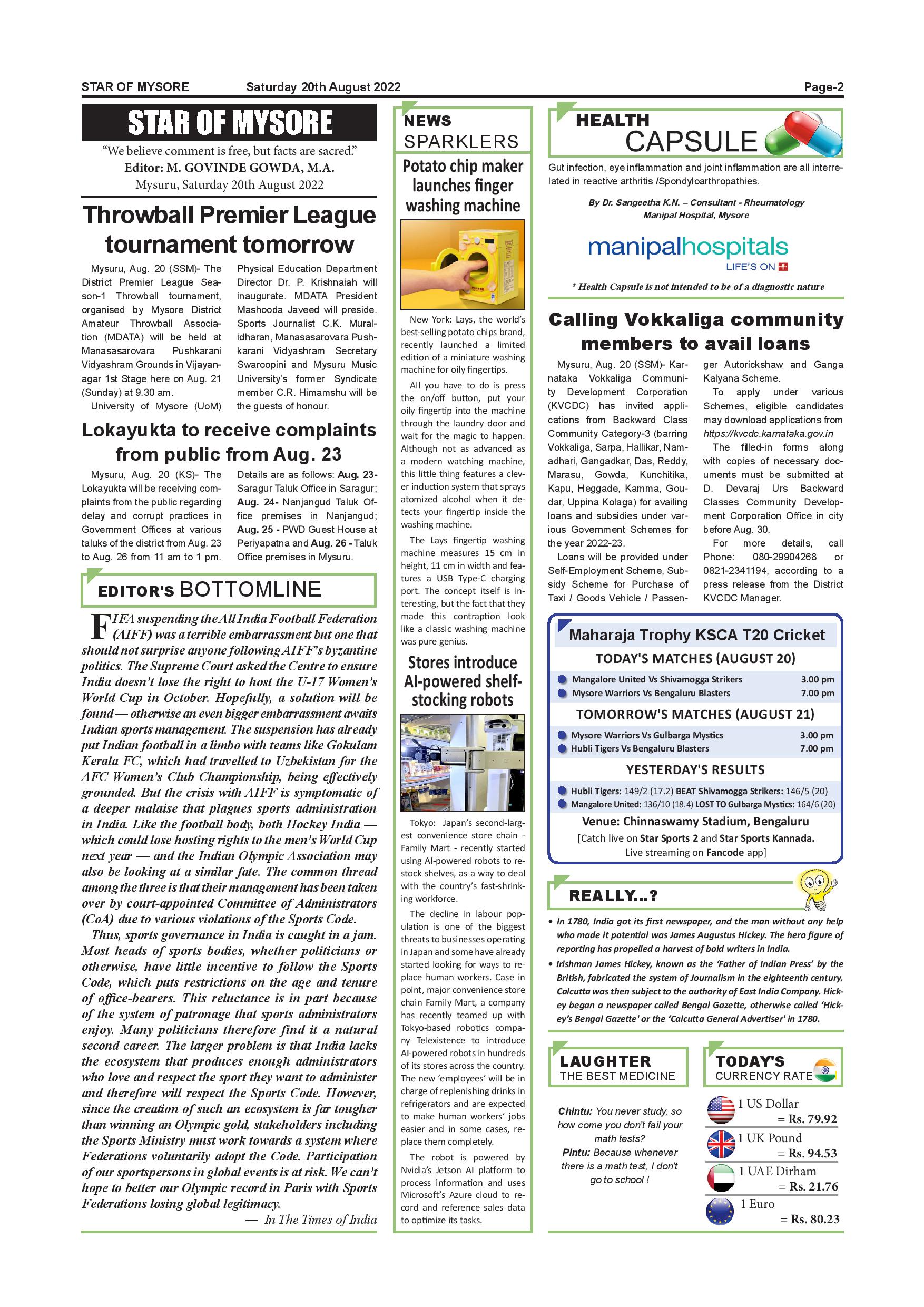 Star of Mysore Page: 2 August 20, 2022 << First << 2 >> Last >> Page 1Page 2Page 3Page 4Page 5Page 6Page 7Page 8Page 9Page 10Page 11Page 12 × Star of Mysore << First << 2 >> Last >> Page-001Page-002Page-003Page-004Page-005Page-006Page-007Page-008Page-009Page-010Page-011Page-012 Page-002