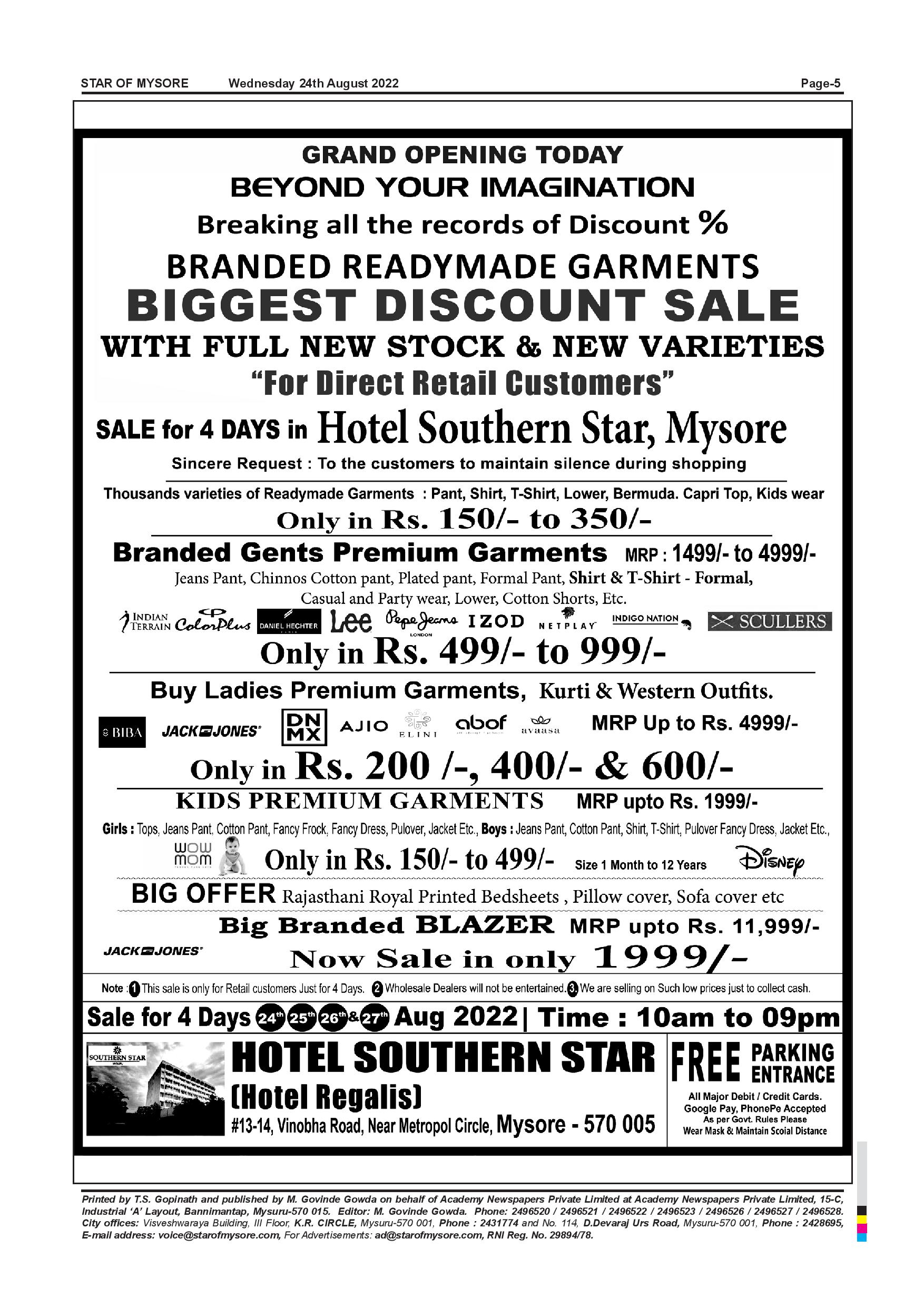 Star of Mysore Page: 5 August 24, 2022 << First << 5 >> Last >> Page 1Page 2Page 3Page 4Page 5Page 6Page 7Page 8Page 9Page 10Page 11Page 12 × Star of Mysore << First << 5 >> Last >> Page-001Page-002Page-003Page-004Page-005Page-006Page-007Page-008Page-009Page-010Page-011Page-012 Page-005