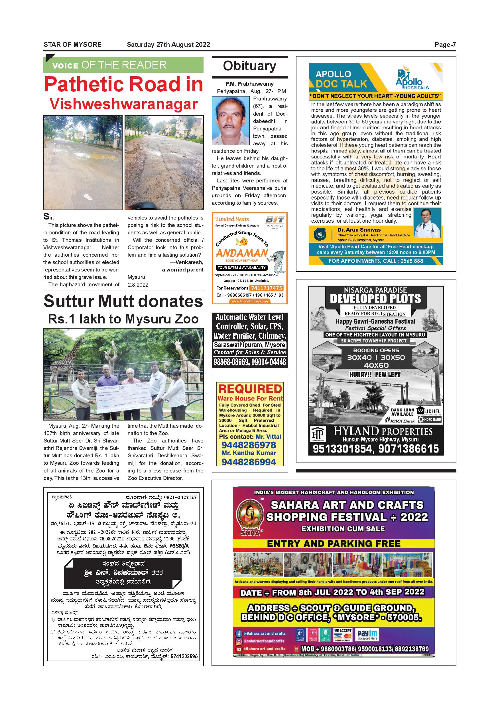 Star of Mysore Page: 7 August 27, 2022 << First << 7 >> Last >> Page 1Page 2Page 3Page 4Page 5Page 6Page 7Page 8Page 9Page 10Page 11Page 12Page 13Page 14Page 15Page 16 × Star of Mysore << First << 7 >> Last >> Page-001Page-002Page-003Page-004Page-005Page-006Page-007Page-008Page-009Page-010Page-011Page-012Page-013Page-014Page-015Page-016 Page-007