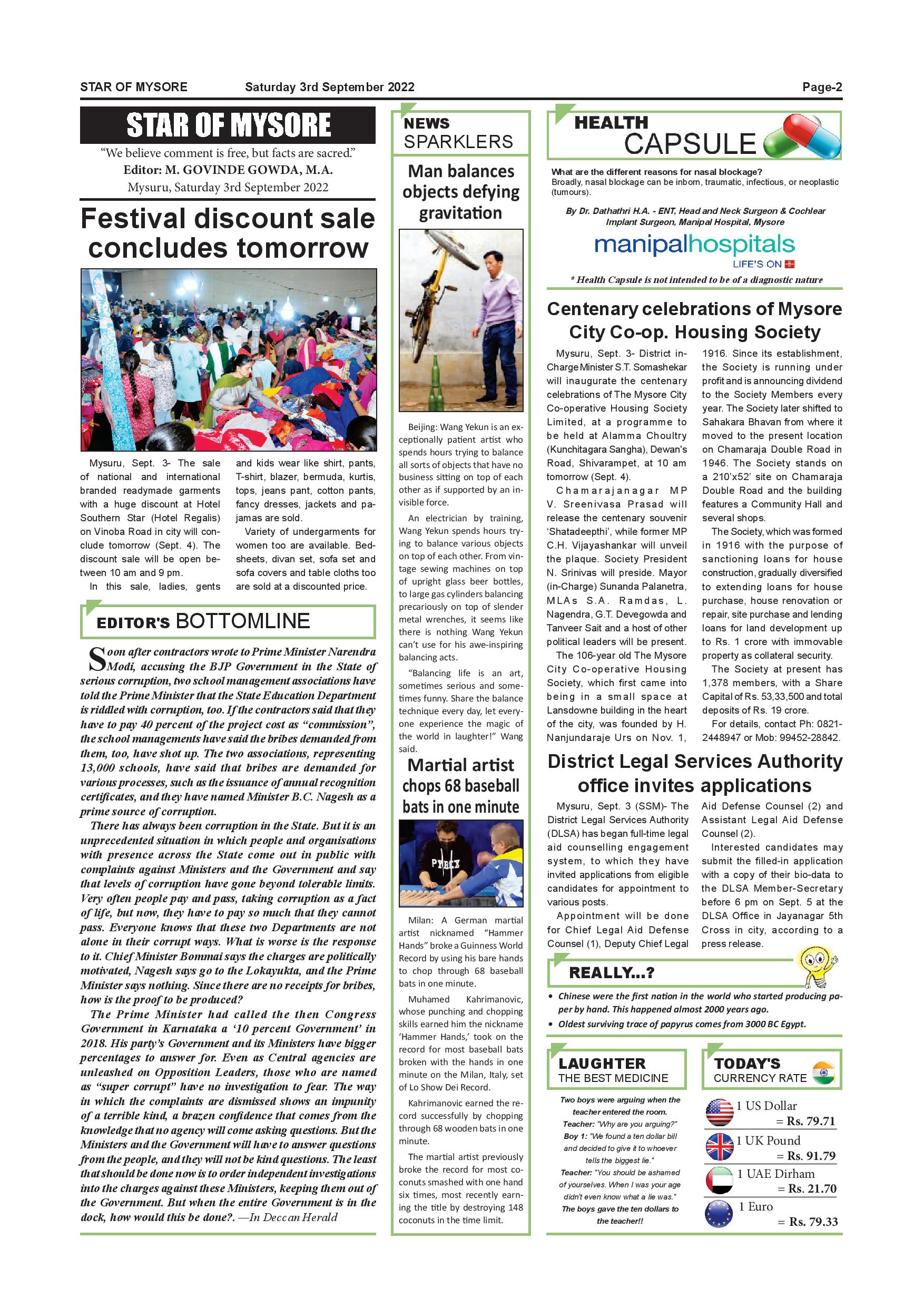 Star of Mysore Page: 2 September 03, 2022 << First << 2 >> Last >> Page 1Page 2Page 3Page 4Page 5Page 6Page 7Page 8Page 9Page 10Page 11Page 12 × Star of Mysore << First << 2 >> Last >> Page-001Page-002Page-003Page-004Page-005Page-006Page-007Page-008Page-009Page-010Page-011Page-012 Page-002