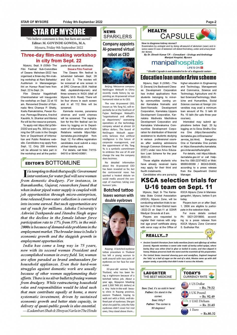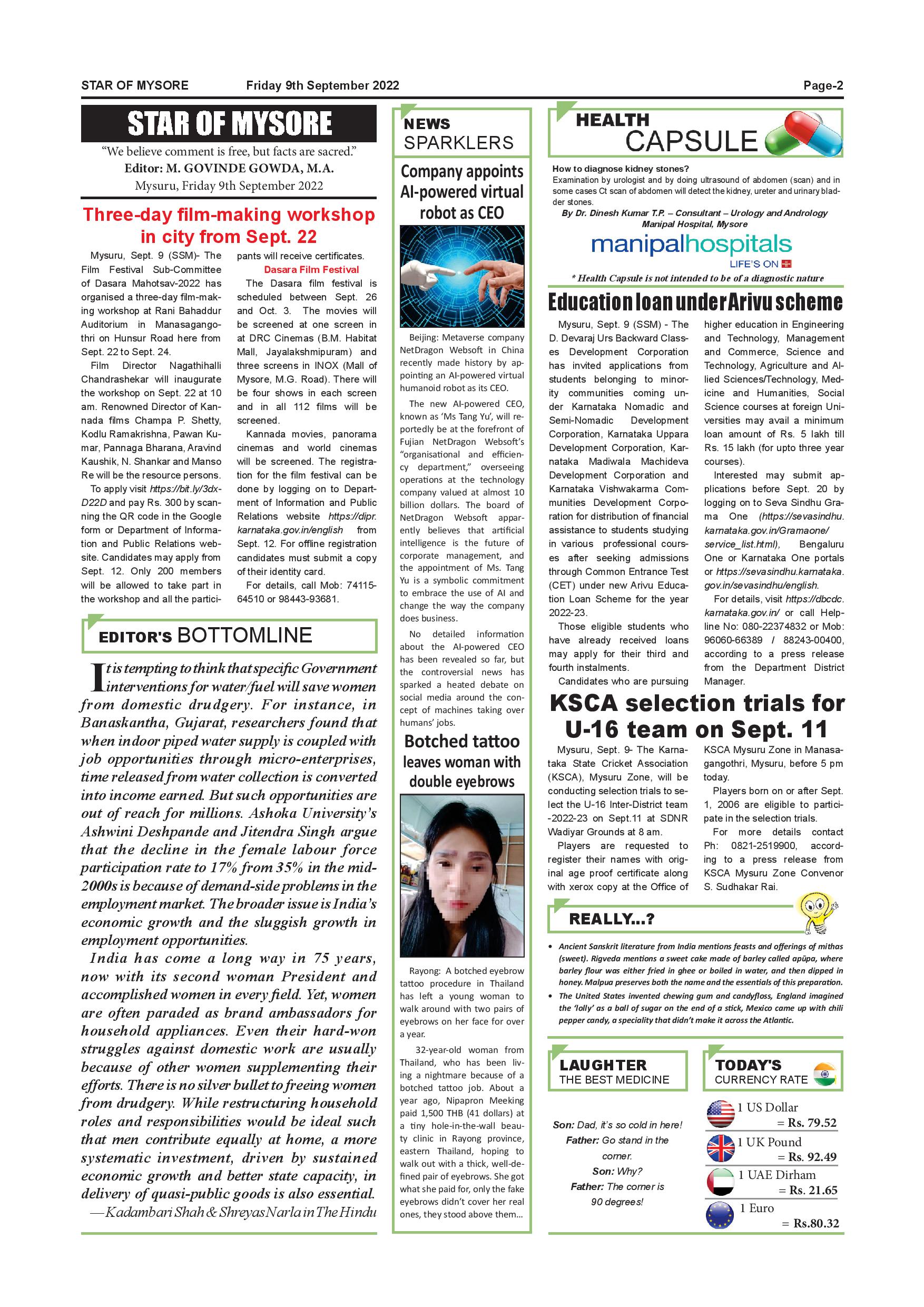 Star of Mysore Page: 2 September 09, 2022 << First << 2 >> Last >> Page 1Page 2Page 3Page 4Page 5Page 6Page 7Page 8Page 9Page 10Page 11Page 12 × Star of Mysore << First << 2 >> Last >> Page-001Page-002Page-003Page-004Page-005Page-006Page-007Page-008Page-009Page-010Page-011Page-012 Page-002