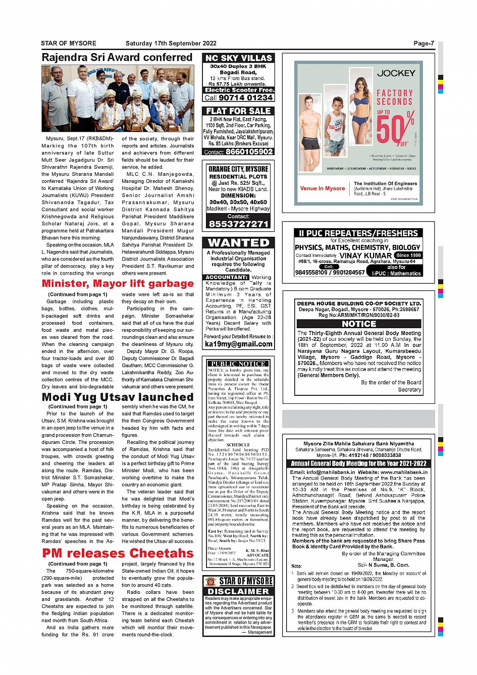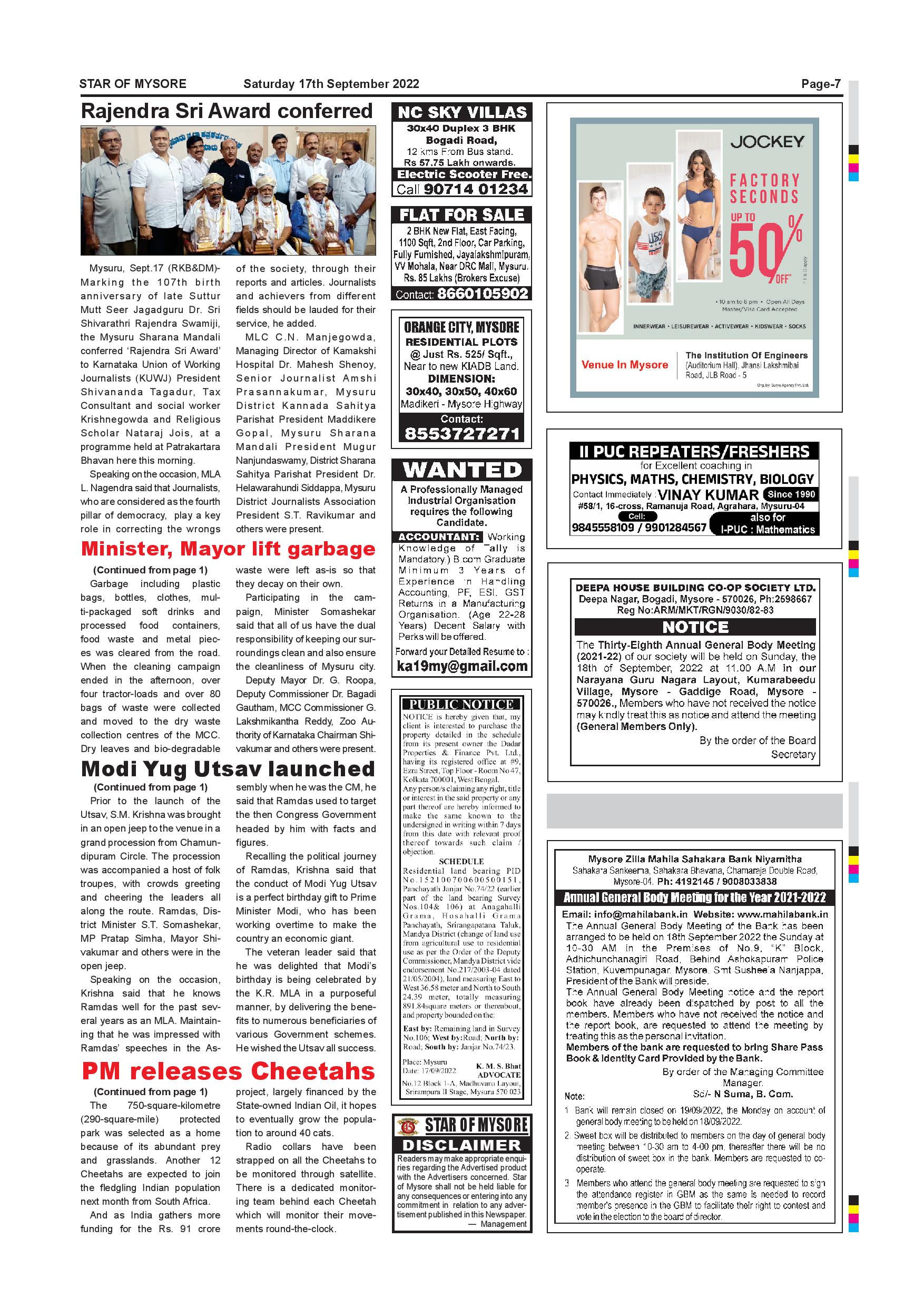 Star of Mysore Page: 7 September 17, 2022 << First << 7 >> Last >> Page 1Page 2Page 3Page 4Page 5Page 6Page 7Page 8Page 9Page 10Page 11Page 12 × Star of Mysore << First << 7 >> Last >> Page-001Page-002Page-003Page-004Page-005Page-006Page-007Page-008Page-009Page-010Page-011Page-012 Page-007