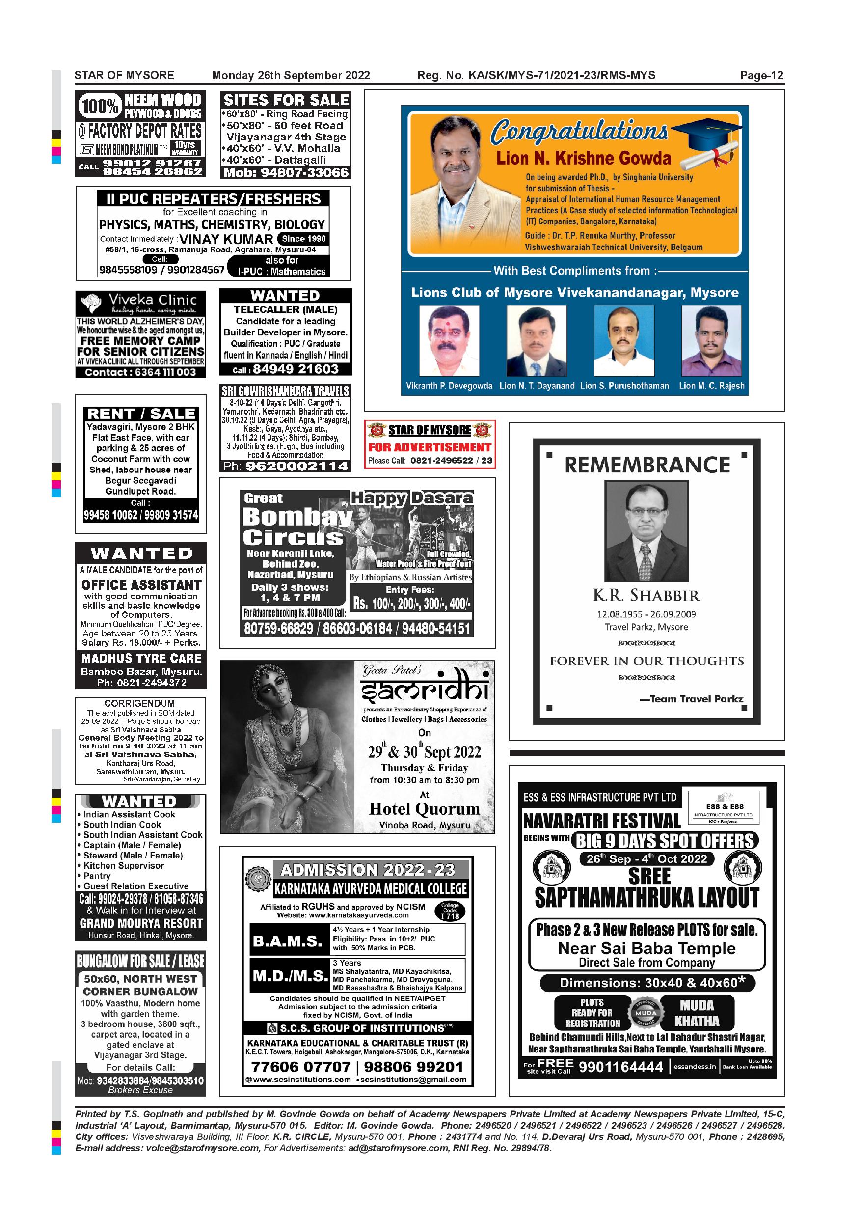 Star of Mysore Page: 12 September 26, 2022 << First << 12 >> Last >> Page 1Page 2Page 3Page 4Page 5Page 6Page 7Page 8Page 9Page 10Page 11Page 12 × Star of Mysore << First << 12 >> Last >> Page-001Page-002Page-003Page-004Page-005Page-006Page-007Page-008Page-009Page-010Page-011Page-012 Page-012
