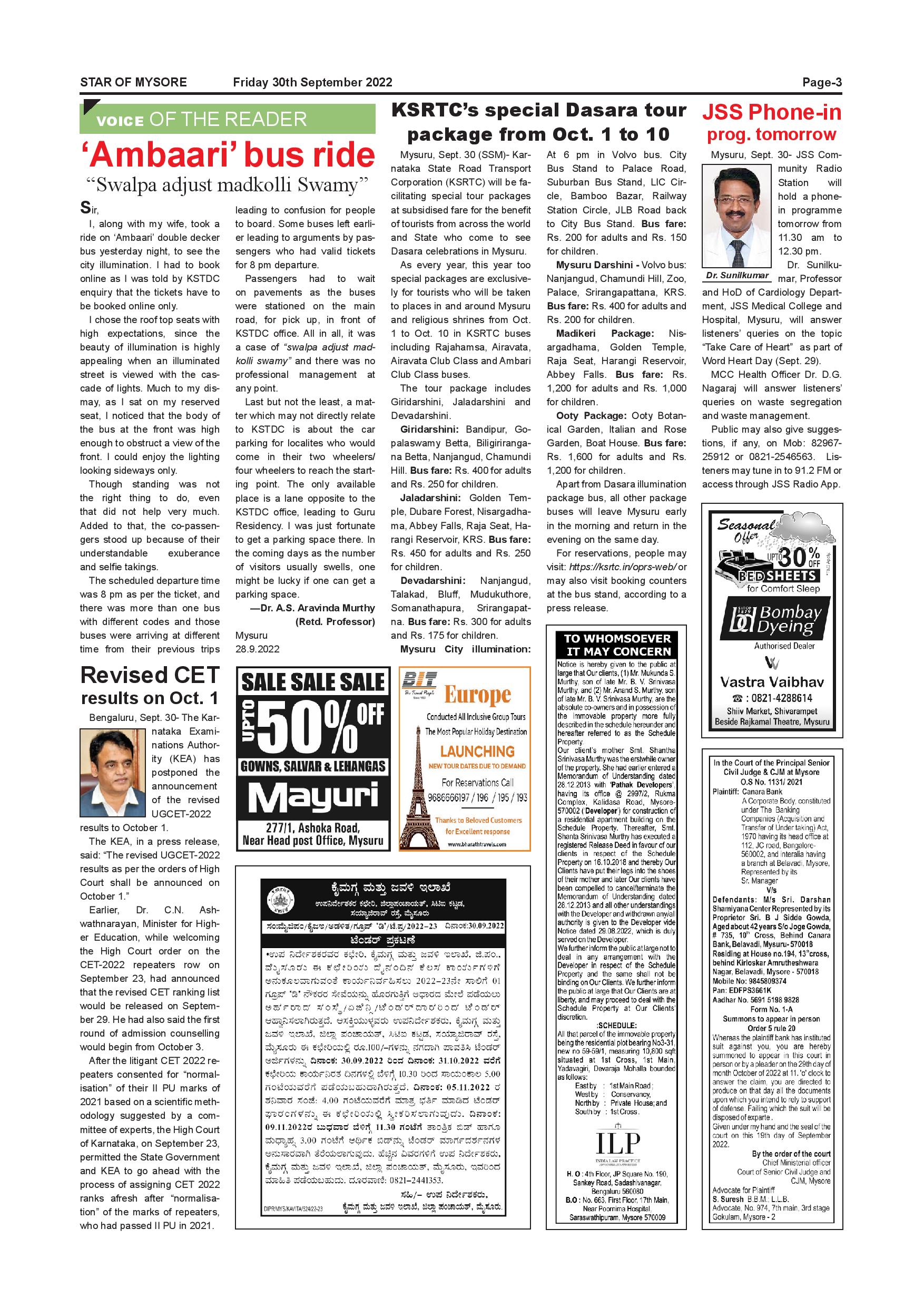Star of Mysore Page: 3 September 30, 2022 << First << 3 >> Last >> Page 1Page 2Page 3Page 4Page 5Page 6Page 7Page 8Page 9Page 10Page 11Page 12 × Star of Mysore << First << 3 >> Last >> SOM-page-001SOM-page-002SOM-page-003SOM-page-004SOM-page-005SOM-page-006SOM-page-007SOM-page-008SOM-page-009SOM-page-010SOM-page-011SOM-page-012 SOM-page-003
