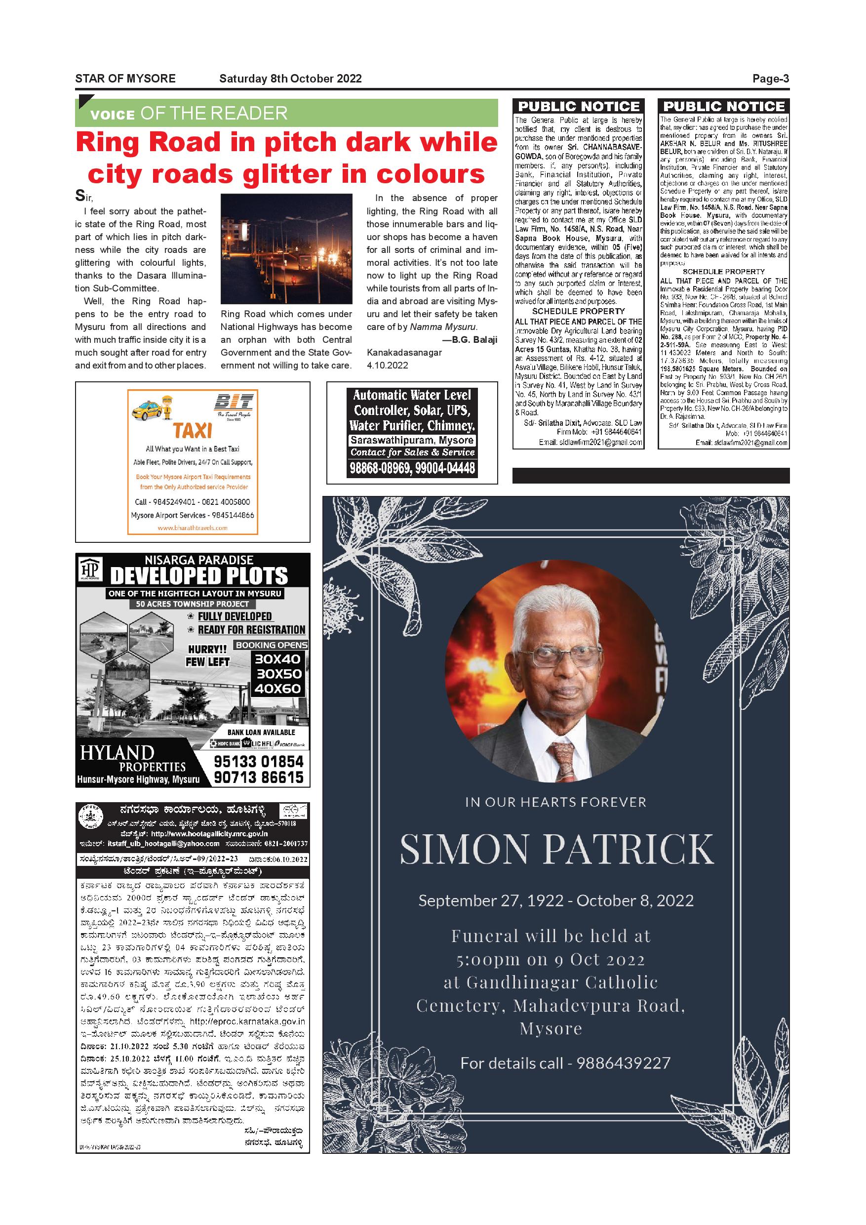 Star of Mysore Page: 3 October 08, 2022 << First << 3 >> Last >> Page 1Page 2Page 3Page 4Page 5Page 6Page 7Page 8Page 9Page 10Page 11Page 12 × Star of Mysore << First << 3 >> Last >> Page-001Page-002Page-003Page-004Page-005Page-006Page-007Page-008Page-009Page-010Page-011Page-012 Page-003