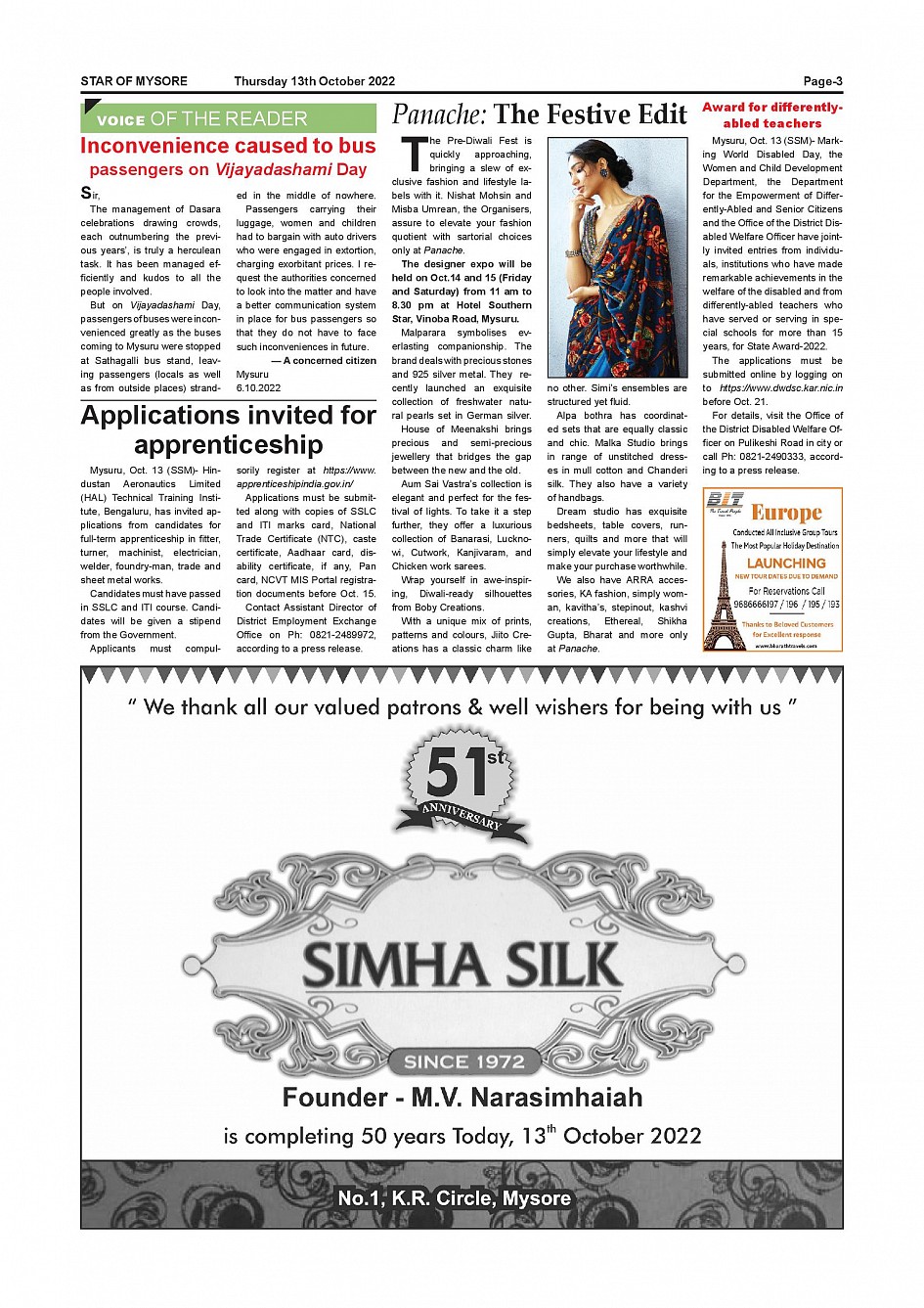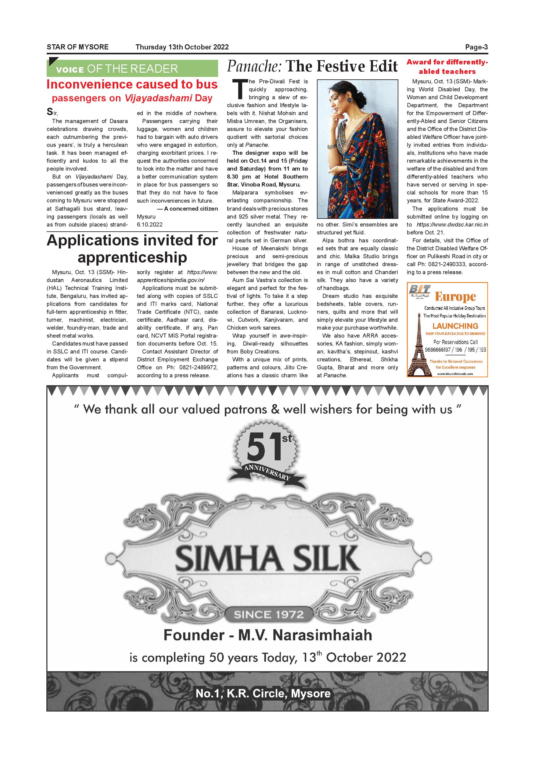 Star of Mysore Page: 3 October 13, 2022 << First << 3 >> Last >> Page 1Page 2Page 3Page 4Page 5Page 6Page 7Page 8Page 9Page 10Page 11Page 12 × Star of Mysore << First << 3 >> Last >> Page-001Page-002Page-003Page-004Page-005Page-006Page-007Page-008Page-009Page-010Page-011Page-012 Page-003