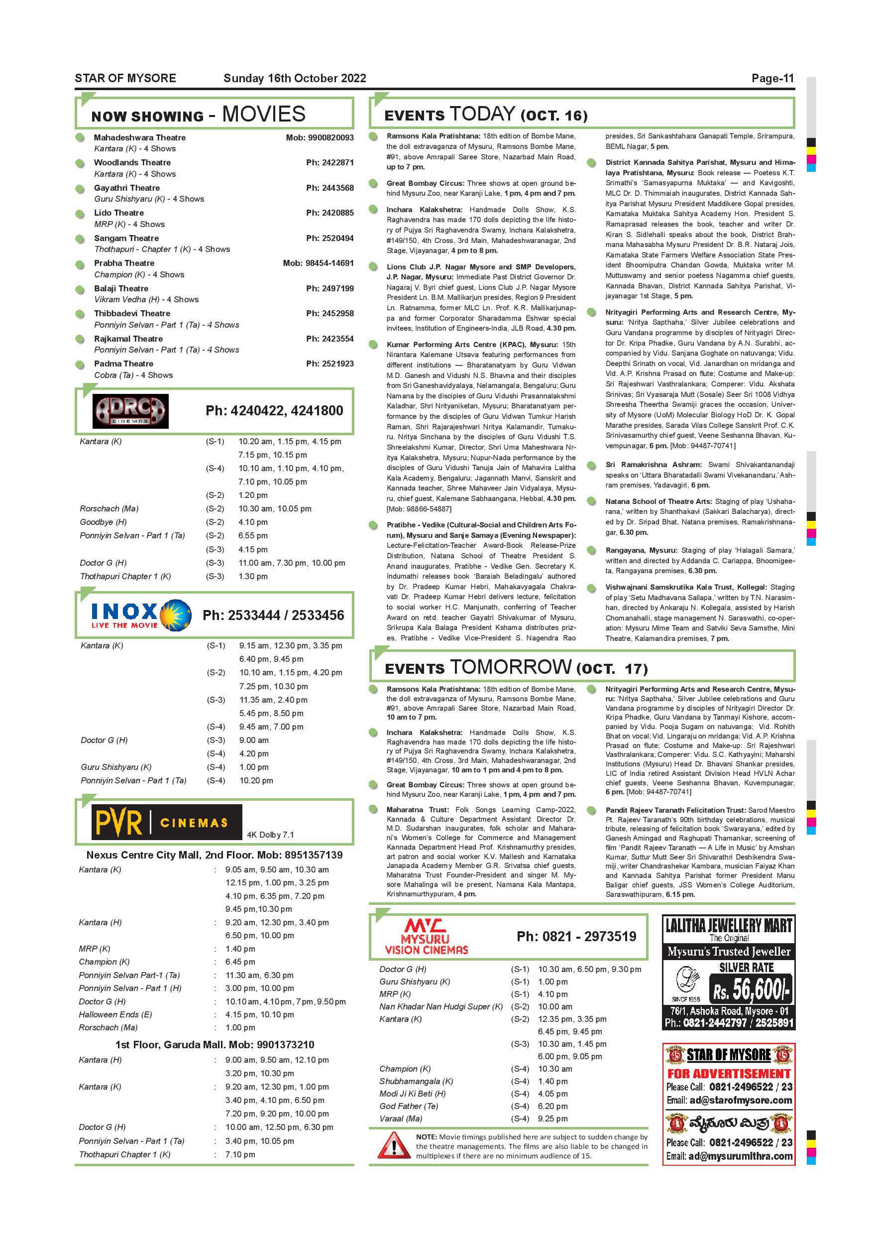 Star of Mysore Page: 11 October 16, 2022 << First << 11 >> Last >> Page 1Page 2Page 3Page 4Page 5Page 6Page 7Page 8Page 9Page 10Page 11Page 12 × Star of Mysore << First << 11 >> Last >> SOM-page-001SOM-page-002SOM-page-003SOM-page-004SOM-page-005SOM-page-006SOM-page-007SOM-page-008SOM-page-009SOM-page-010SOM-page-011SOM-page-012 SOM-page-011