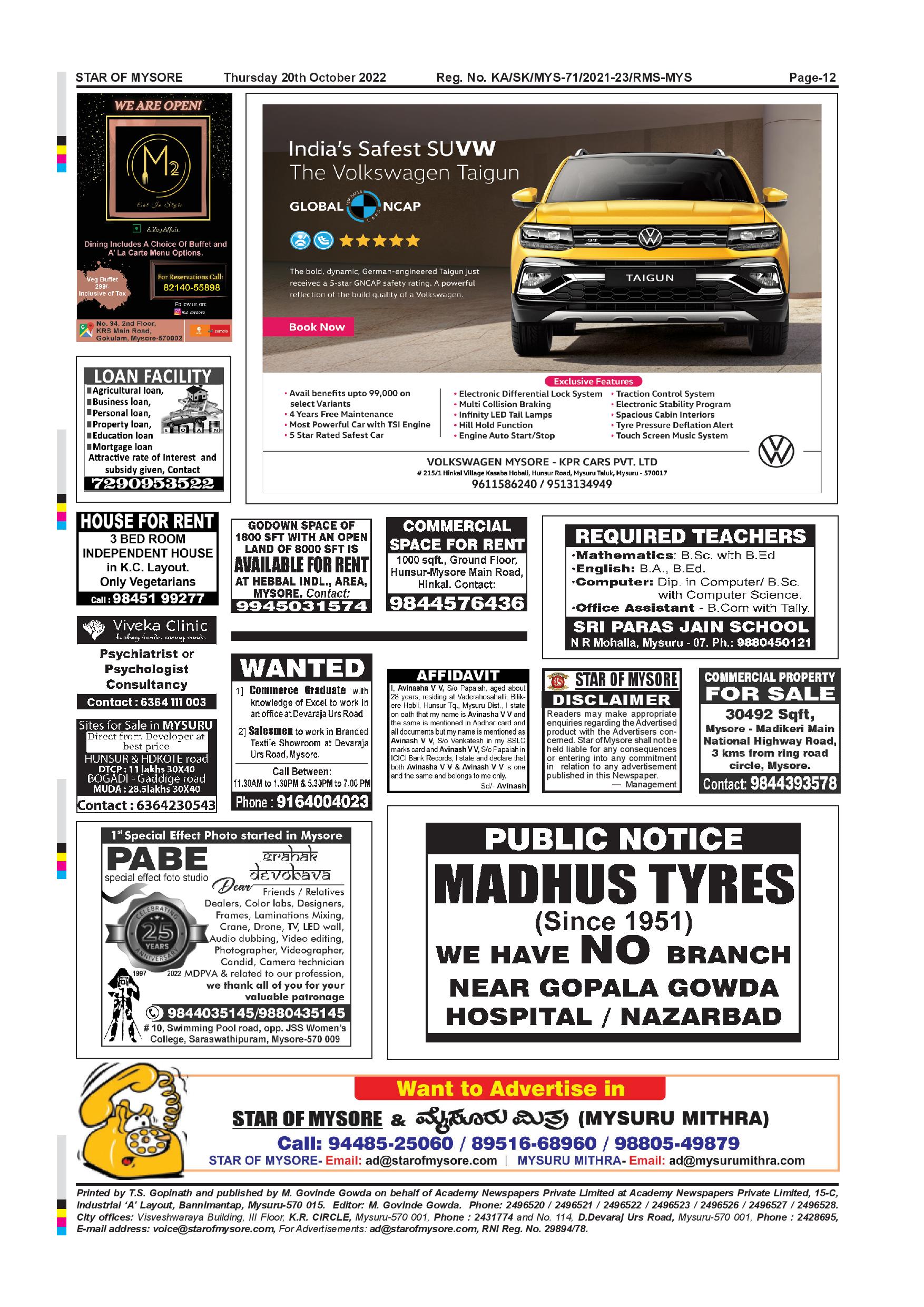 Star of Mysore Page: 12 October 20, 2022 << First << 12 >> Last >> Page 1Page 2Page 3Page 4Page 5Page 6Page 7Page 8Page 9Page 10Page 11Page 12 × Star of Mysore << First << 12 >> Last >> Page-001Page-002Page-003Page-004Page-005Page-006Page-007Page-008Page-009Page-010Page-011Page-012 Page-012