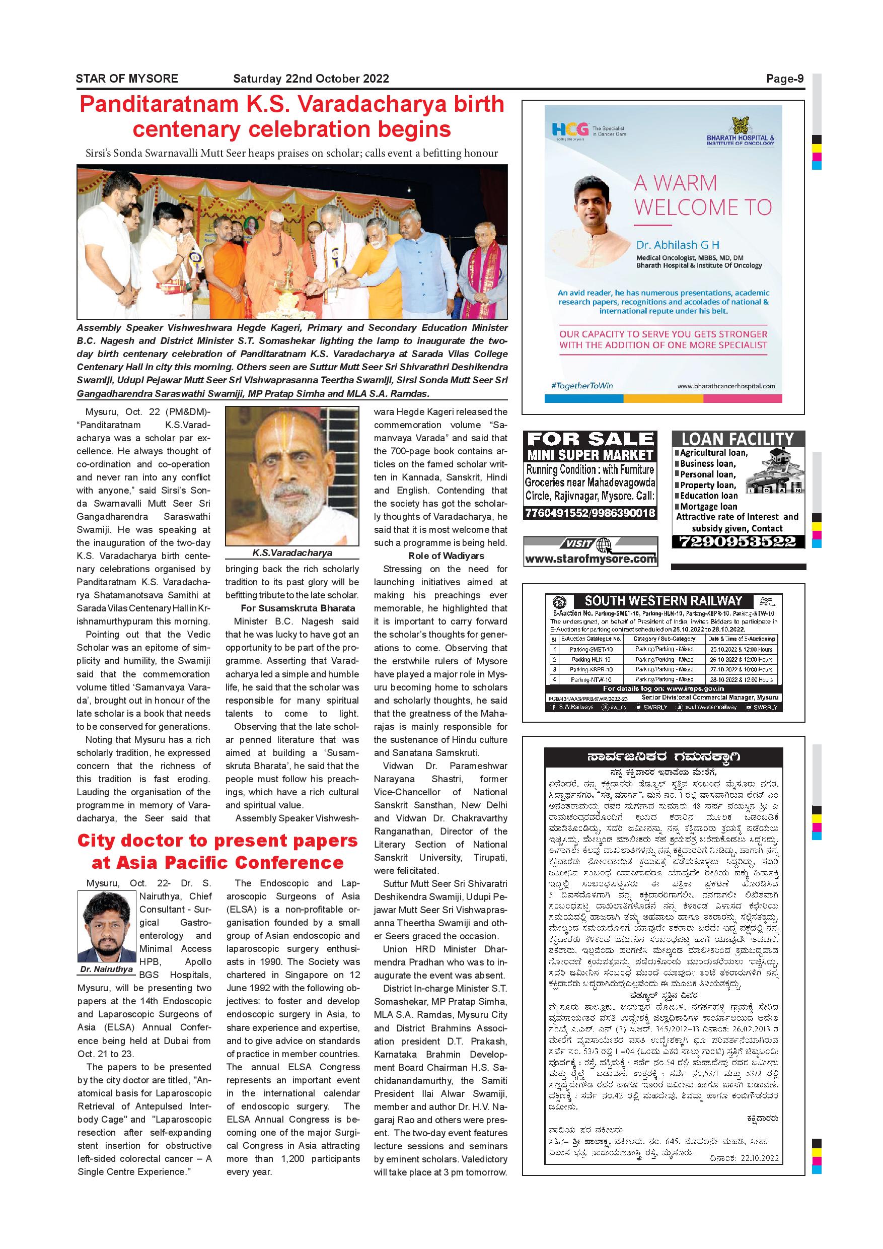 Star of Mysore Page: 9 October 22, 2022 << First << 9 >> Last >> Page 1Page 2Page 3Page 4Page 5Page 6Page 7Page 8Page 9Page 10Page 11Page 12Page 13Page 14Page 15Page 16 × Star of Mysore << First << 9 >> Last >> Page-001Page-002Page-003Page-004Page-005Page-006Page-007Page-008Page-009Page-010Page-011Page-012Page-013Page-014Page-015Page-016 Page-009