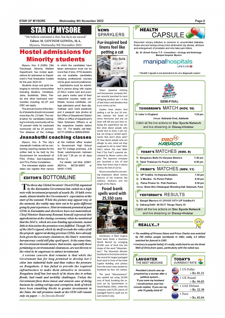 Star of Mysore Page: 2 November 09, 2022 << First << 2 >> Last >> Page 1Page 2Page 3Page 4Page 5Page 6Page 7Page 8Page 9Page 10Page 11Page 12 × Star of Mysore << First << 2 >> Last >> Page-001Page-002Page-003Page-004Page-005Page-006Page-007Page-008Page-009Page-010Page-011Page-012 Page-002