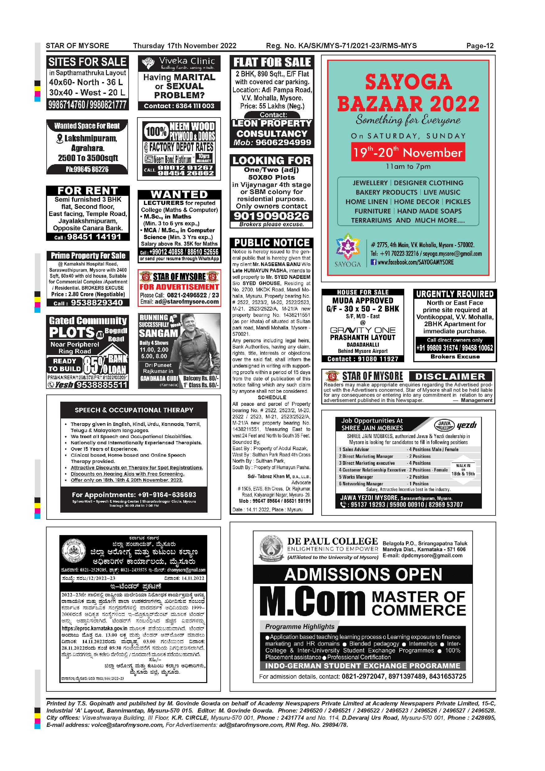 Star of Mysore Page: 12 November 17, 2022 << First << 12 >> Last >> Page 1Page 2Page 3Page 4Page 5Page 6Page 7Page 8Page 9Page 10Page 11Page 12 × Star of Mysore << First << 12 >> Last >> Page-001Page-002Page-003Page-004Page-005Page-006Page-007Page-008Page-009Page-010Page-011Page-012 Page-012