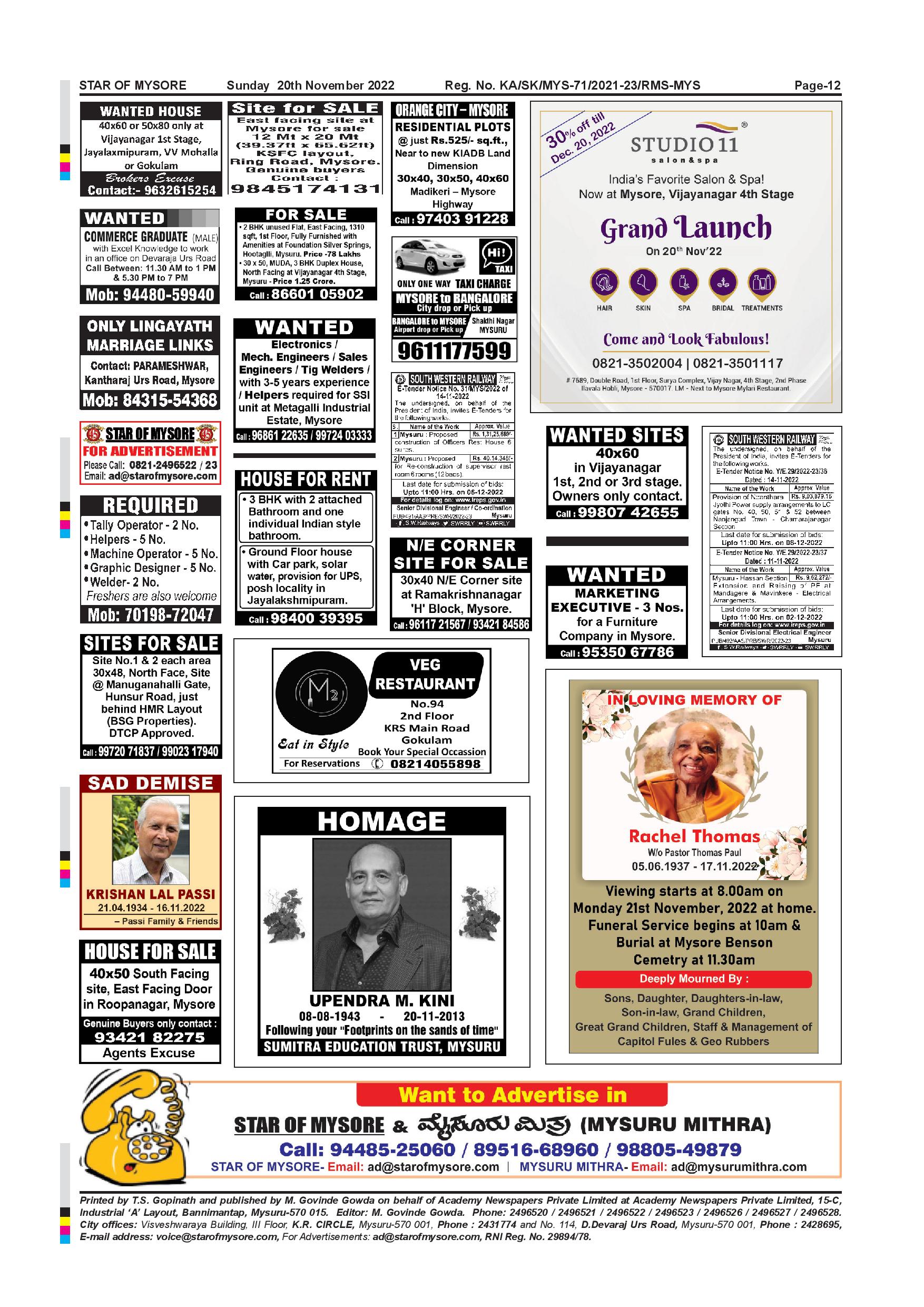 Star of Mysore Page: 12 November 20, 2022 << First << 12 >> Last >> Page 1Page 2Page 3Page 4Page 5Page 6Page 7Page 8Page 9Page 10Page 11Page 12 × Star of Mysore << First << 12 >> Last >> Page-001Page-002Page-003Page-004Page-005Page-006Page-007Page-008Page-009Page-010Page-011Page-012 Page-012