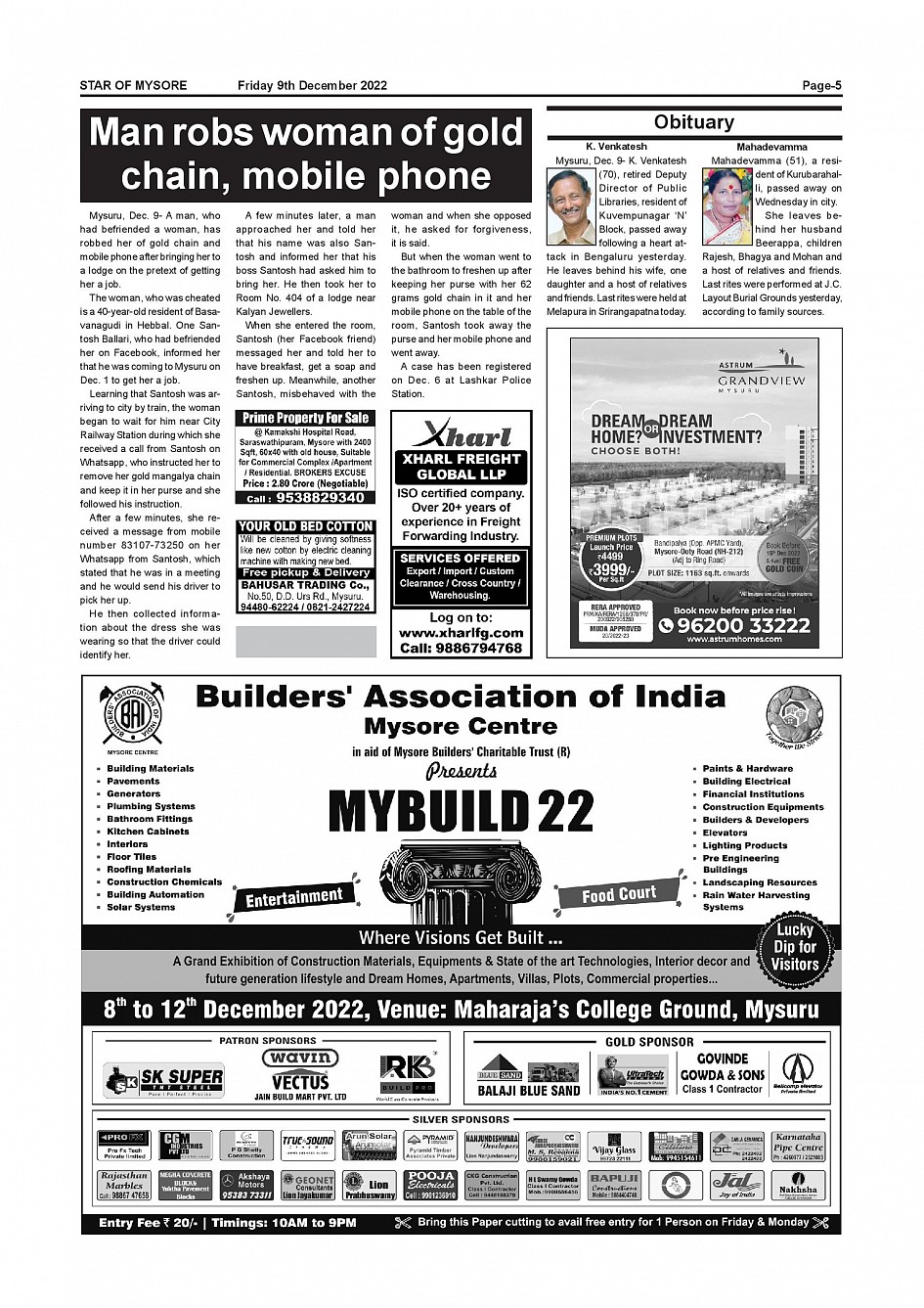 Star of Mysore Page: 5 December 09, 2022 << First << 5 >> Last >> Page 1Page 2Page 3Page 4Page 5Page 6Page 7Page 8Page 9Page 10Page 11Page 12Page 13Page 14Page 15Page 16 × Star of Mysore << First << 5 >> Last >> Page-001Page-002Page-003Page-004Page-005Page-006Page-007Page-008Page-009Page-010Page-011Page-012Page-013Page-014Page-015Page-016 Page-005