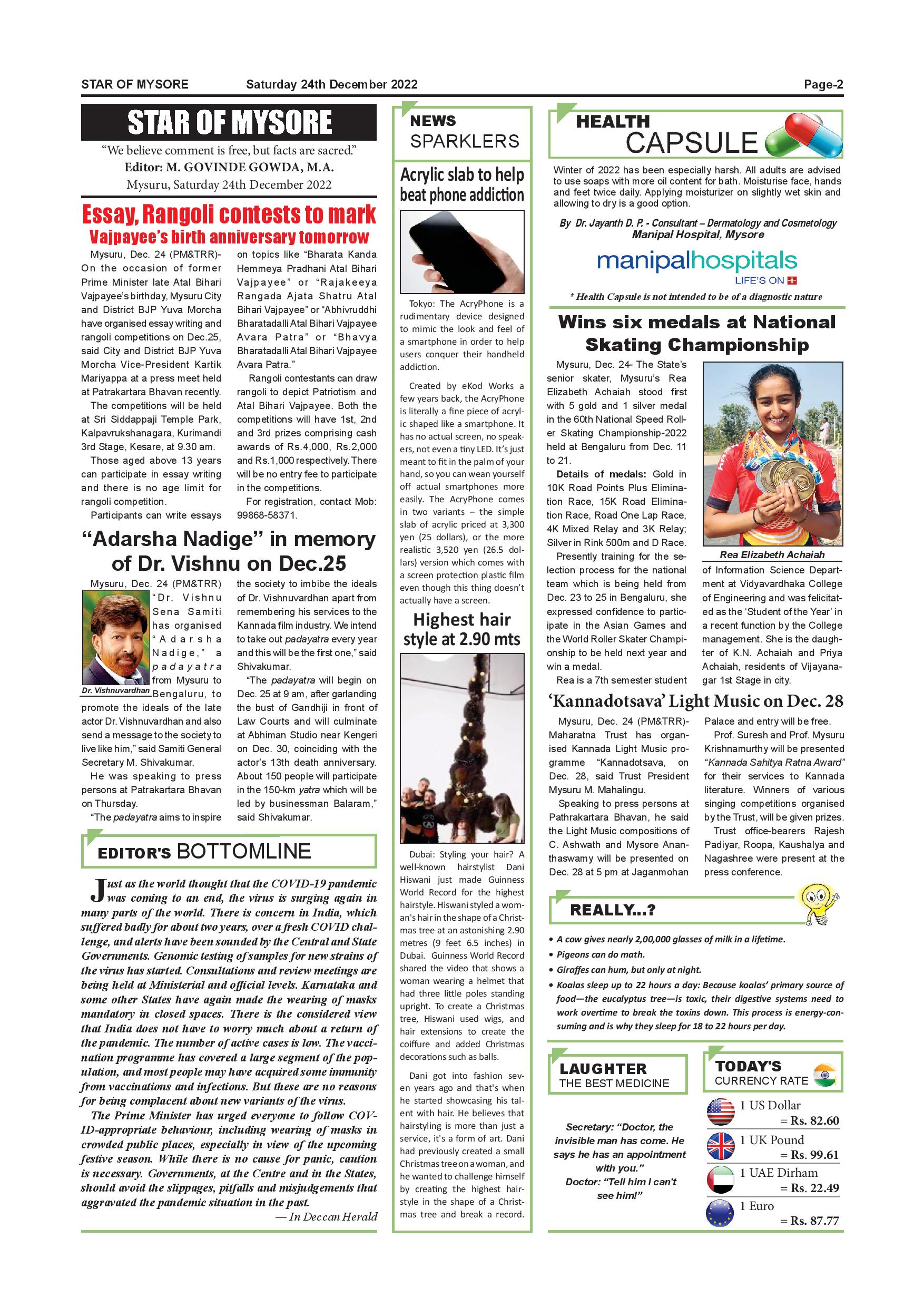 Star of Mysore Page: 2 December 24, 2022 << First << 2 >> Last >> Page 1Page 2Page 3Page 4Page 5Page 6Page 7Page 8Page 9Page 10Page 11Page 12 × Star of Mysore << First << 2 >> Last >> SOM-page-001SOM-page-002SOM-page-003SOM-page-004SOM-page-005SOM-page-006SOM-page-007SOM-page-008SOM-page-009SOM-page-010SOM-page-011SOM-page-012 SOM-page-002