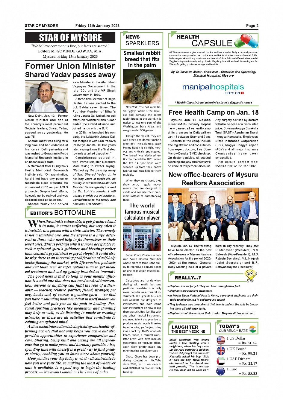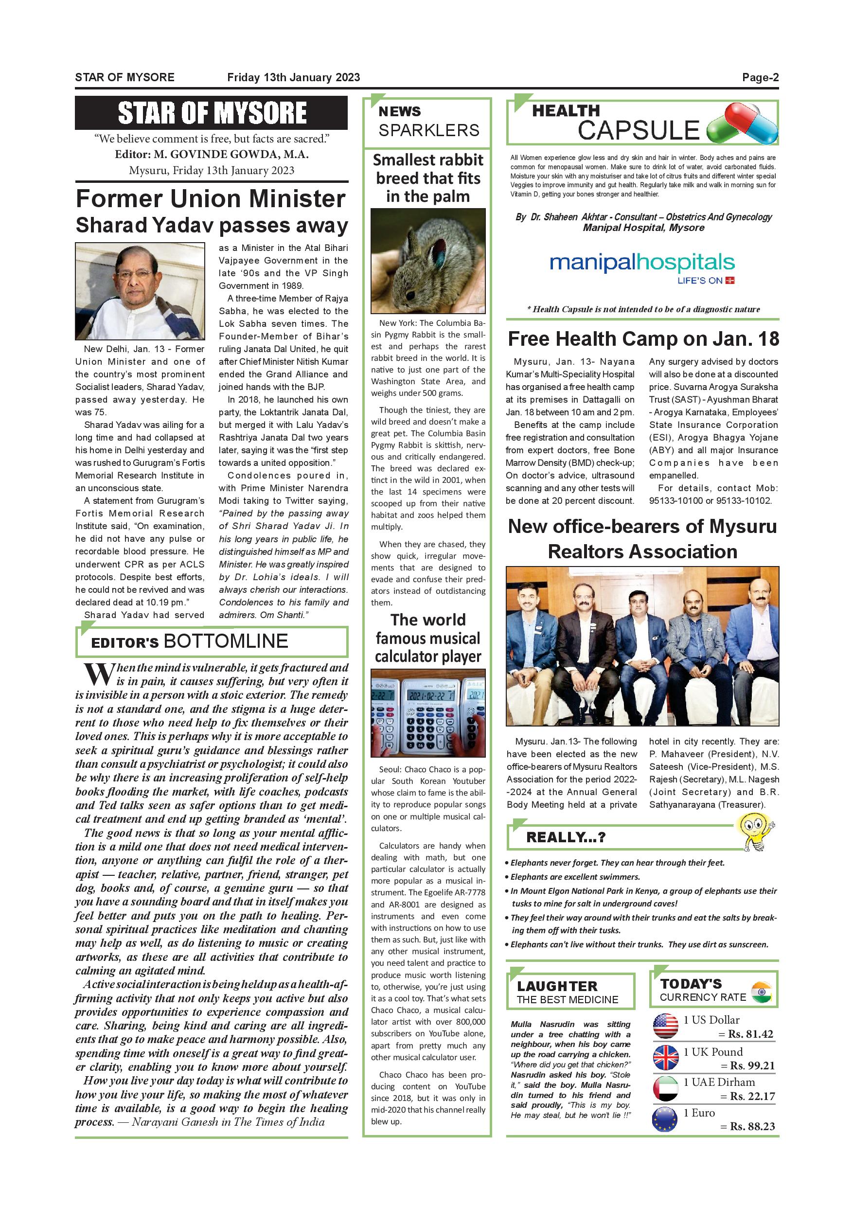 Star of Mysore Page: 2 January 13, 2023 << First << 2 >> Last >> Page 1Page 2Page 3Page 4Page 5Page 6Page 7Page 8Page 9Page 10Page 11Page 12 × Star of Mysore << First << 2 >> Last >> SOM-page-001SOM-page-002SOM-page-003SOM-page-004SOM-page-005SOM-page-006SOM-page-007SOM-page-008SOM-page-009SOM-page-010SOM-page-011SOM-page-012 SOM-page-002
