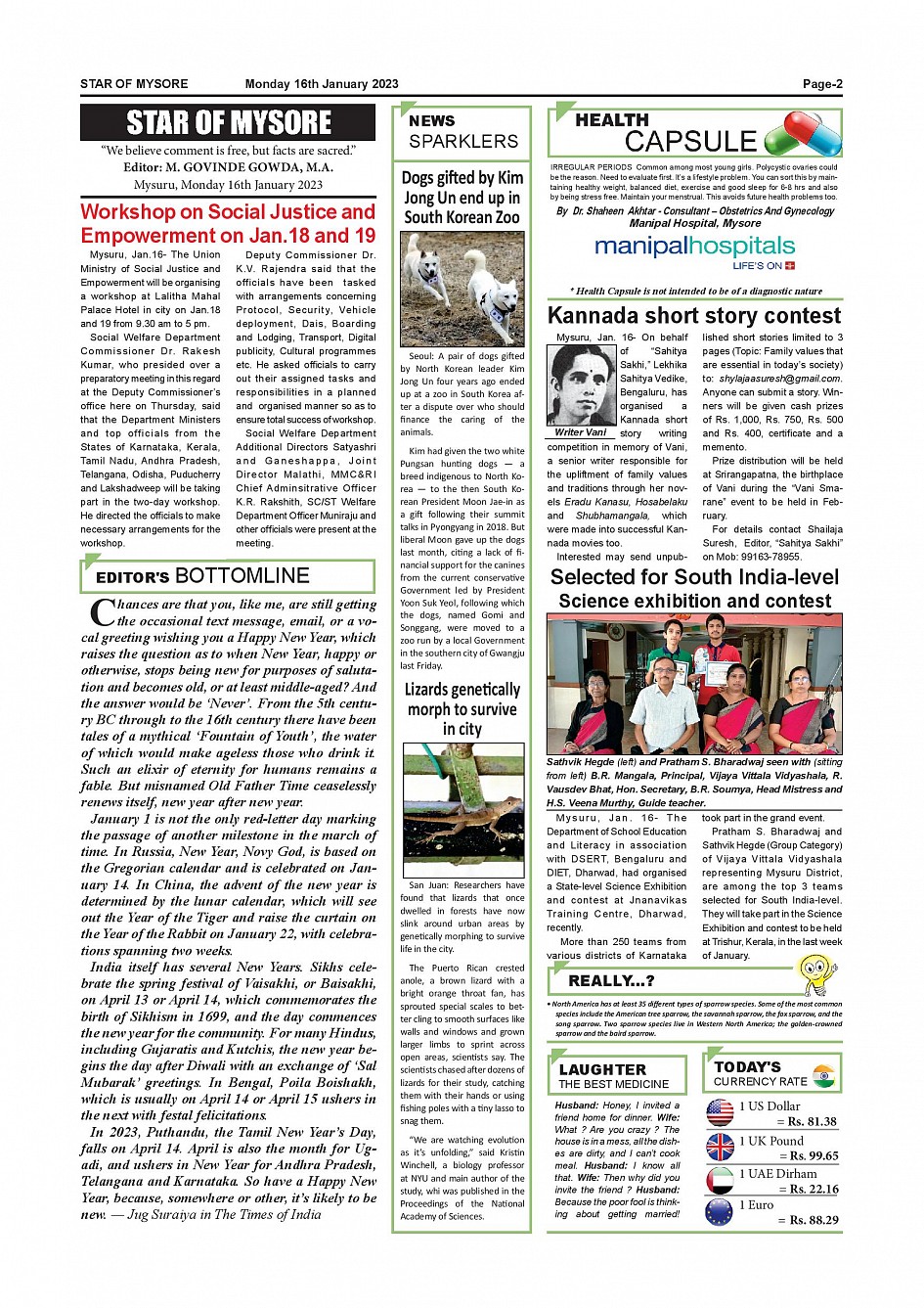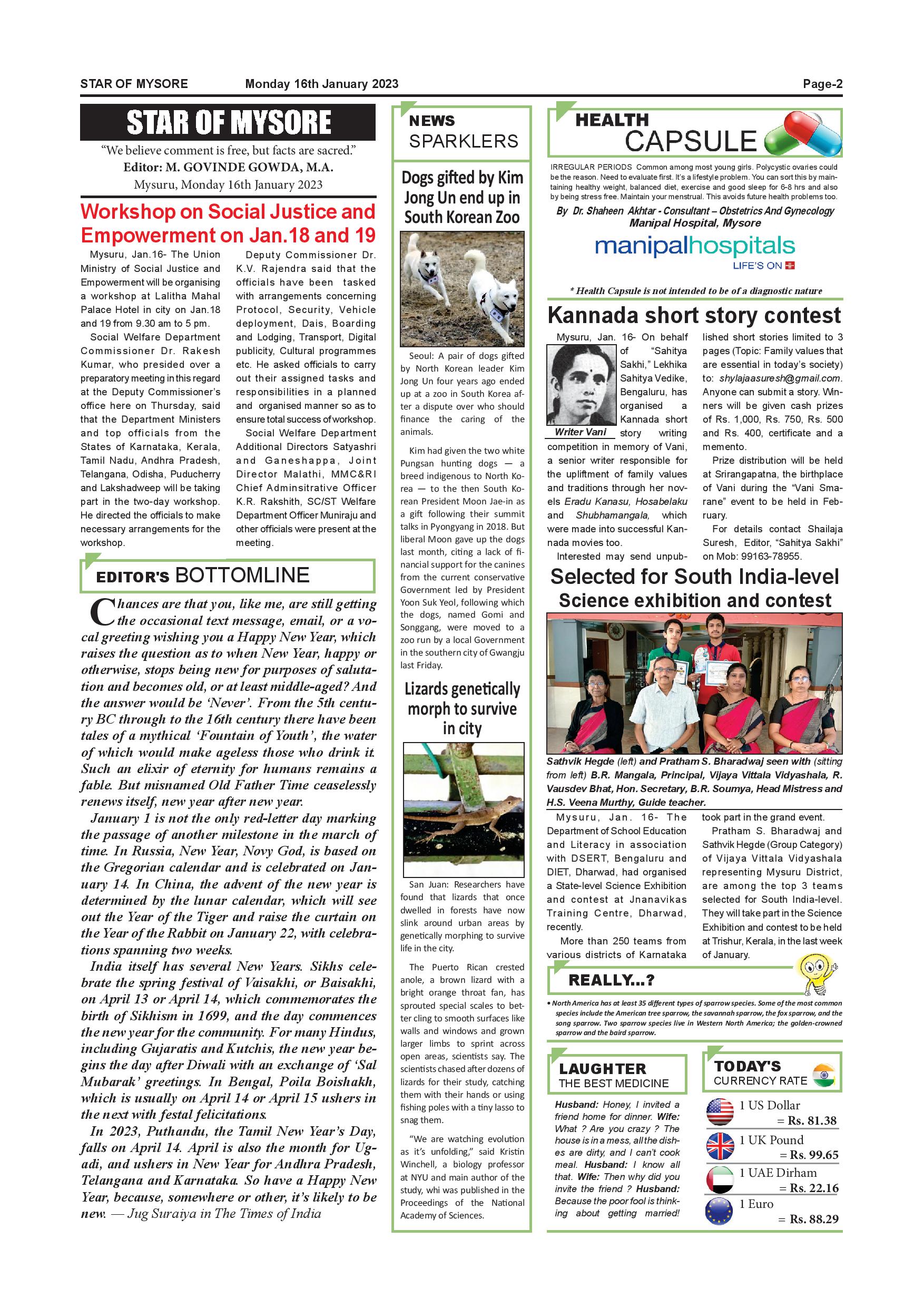 Star of Mysore Page: 2 January 16, 2023 << First << 2 >> Last >> Page 1Page 2Page 3Page 4Page 5Page 6Page 7Page 8Page 9Page 10Page 11Page 12 × Star of Mysore << First << 2 >> Last >> SOM-page-001SOM-page-002SOM-page-003SOM-page-004SOM-page-005SOM-page-006SOM-page-007SOM-page-008SOM-page-009SOM-page-010SOM-page-011SOM-page-012 SOM-page-002