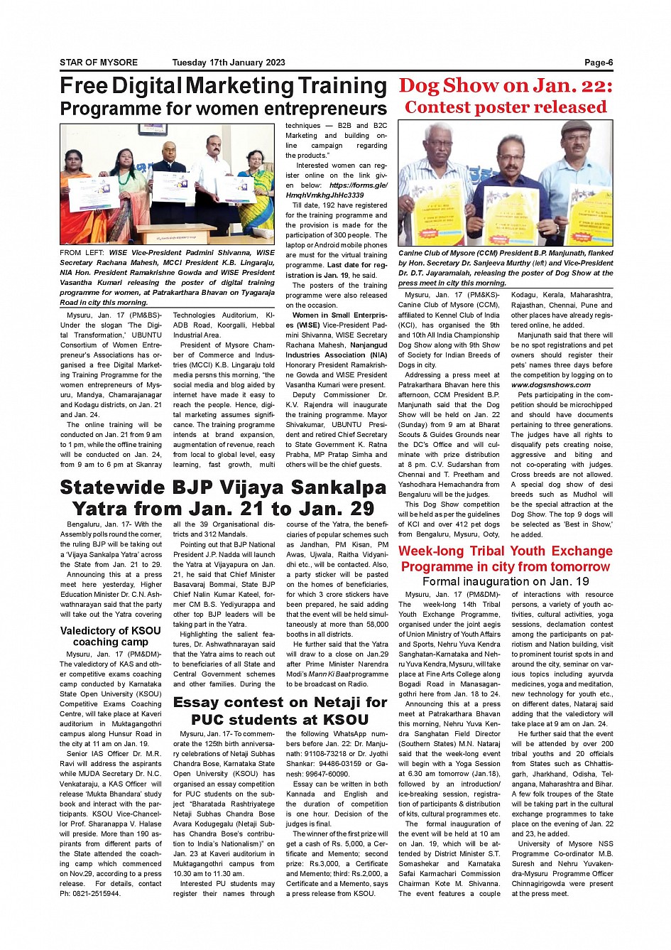 Star of Mysore Page: 6 January 17, 2023 << First << 6 >> Last >> Page 1Page 2Page 3Page 4Page 5Page 6Page 7Page 8Page 9Page 10Page 11Page 12 × Star of Mysore << First << 6 >> Last >> SOM-page-001SOM-page-002SOM-page-003SOM-page-004SOM-page-005SOM-page-006SOM-page-007SOM-page-008SOM-page-009SOM-page-010SOM-page-011SOM-page-012 SOM-page-006
