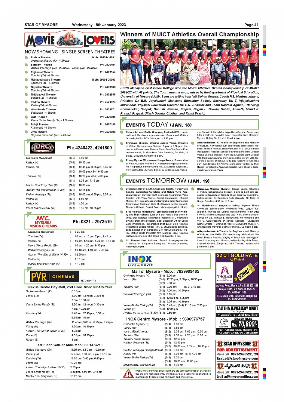 Star of Mysore Page: 11 January 18, 2023 << First << 11 >> Last >> Page 1Page 2Page 3Page 4Page 5Page 6Page 7Page 8Page 9Page 10Page 11Page 12 × Star of Mysore << First << 11 >> Last >> SOM-page-001SOM-page-002SOM-page-003SOM-page-004SOM-page-005SOM-page-006SOM-page-007SOM-page-008SOM-page-009SOM-page-010SOM-page-011SOM-page-012 SOM-page-011