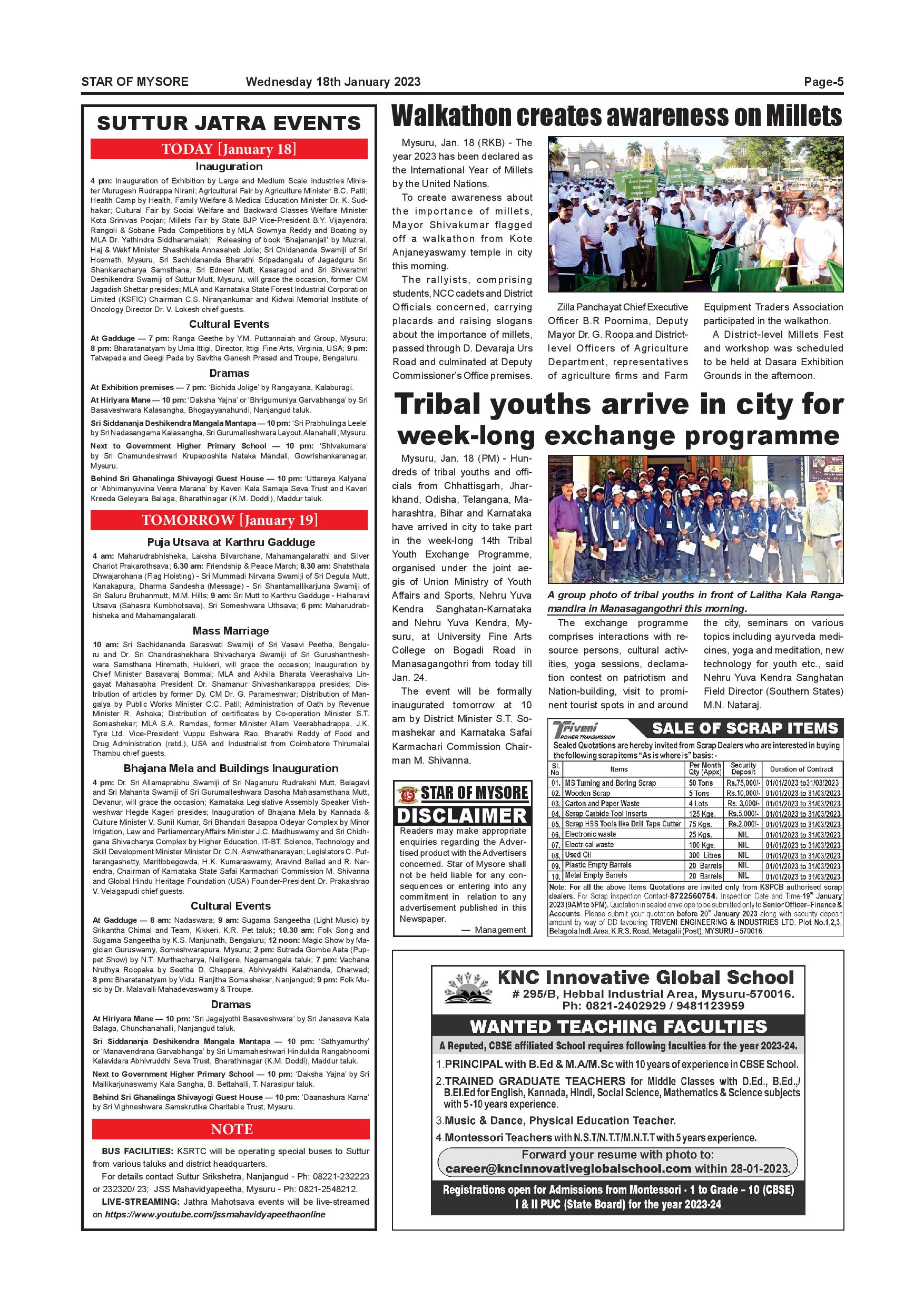 Star of Mysore Page: 5 January 18, 2023 << First << 5 >> Last >> Page 1Page 2Page 3Page 4Page 5Page 6Page 7Page 8Page 9Page 10Page 11Page 12 × Star of Mysore << First << 5 >> Last >> SOM-page-001SOM-page-002SOM-page-003SOM-page-004SOM-page-005SOM-page-006SOM-page-007SOM-page-008SOM-page-009SOM-page-010SOM-page-011SOM-page-012 SOM-page-005