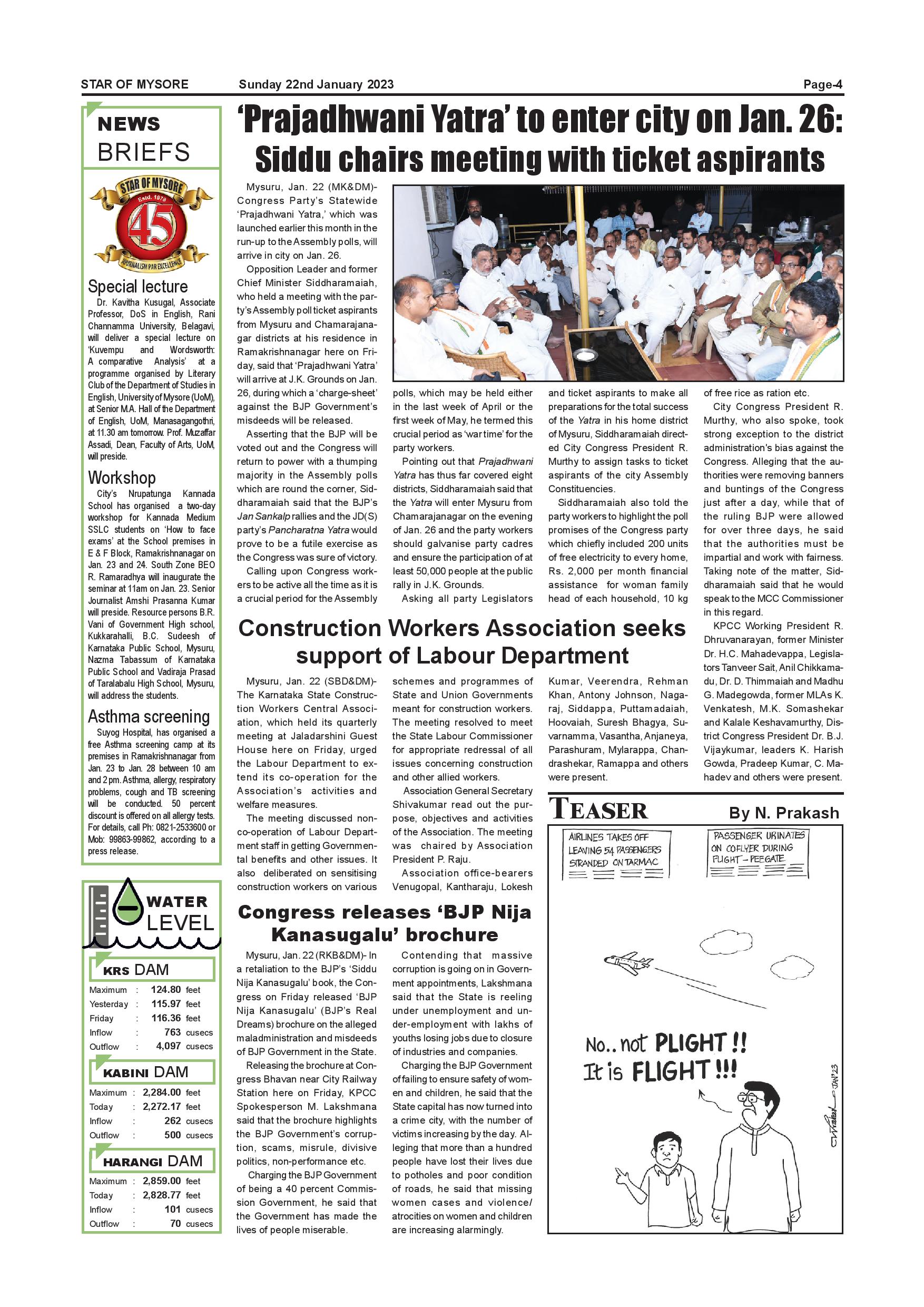 Star of Mysore Page: 4 January 22, 2023 << First << 4 >> Last >> Page 1Page 2Page 3Page 4Page 5Page 6Page 7Page 8Page 9Page 10Page 11Page 12 × Star of Mysore << First << 4 >> Last >> SOM-page-001SOM-page-002SOM-page-003SOM-page-004SOM-page-005SOM-page-006SOM-page-007SOM-page-008SOM-page-009SOM-page-010SOM-page-011SOM-page-012 SOM-page-004