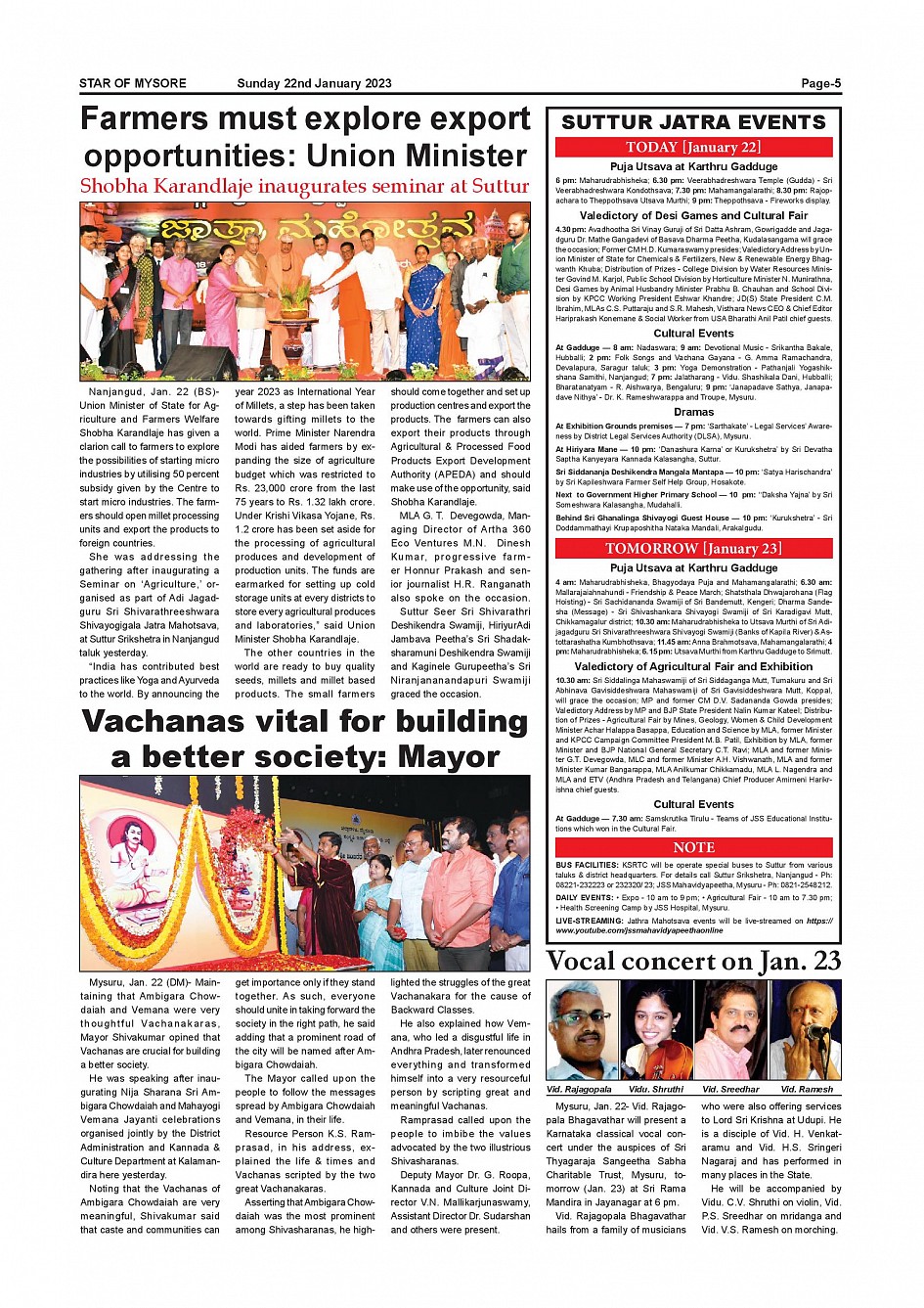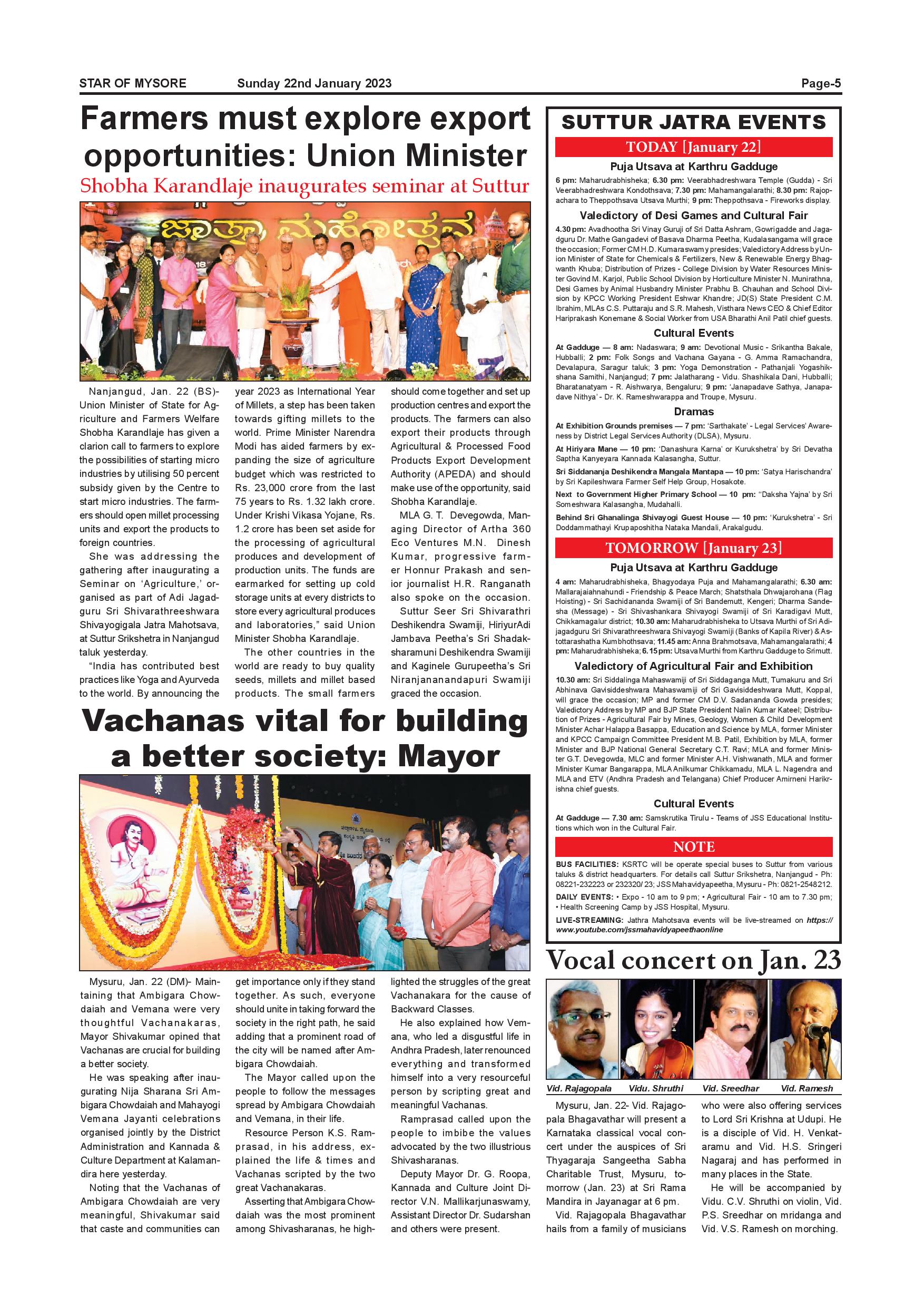 Star of Mysore Page: 5 January 22, 2023 << First << 5 >> Last >> Page 1Page 2Page 3Page 4Page 5Page 6Page 7Page 8Page 9Page 10Page 11Page 12 × Star of Mysore << First << 5 >> Last >> SOM-page-001SOM-page-002SOM-page-003SOM-page-004SOM-page-005SOM-page-006SOM-page-007SOM-page-008SOM-page-009SOM-page-010SOM-page-011SOM-page-012 SOM-page-005