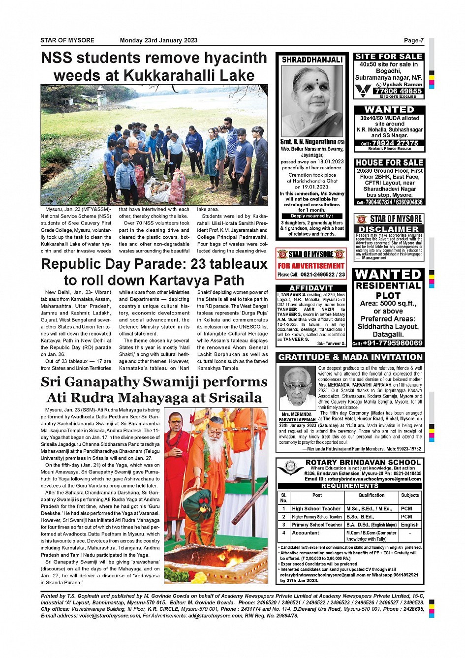 Star of Mysore Page: 7 January 23, 2023 << First << 7 >> Last >> Page 1Page 2Page 3Page 4Page 5Page 6Page 7Page 8Page 9Page 10Page 11Page 12 × Star of Mysore << First << 7 >> Last >> SOM-page-001SOM-page-002SOM-page-003SOM-page-004SOM-page-005SOM-page-006SOM-page-007SOM-page-008SOM-page-009SOM-page-010SOM-page-011SOM-page-012 SOM-page-007
