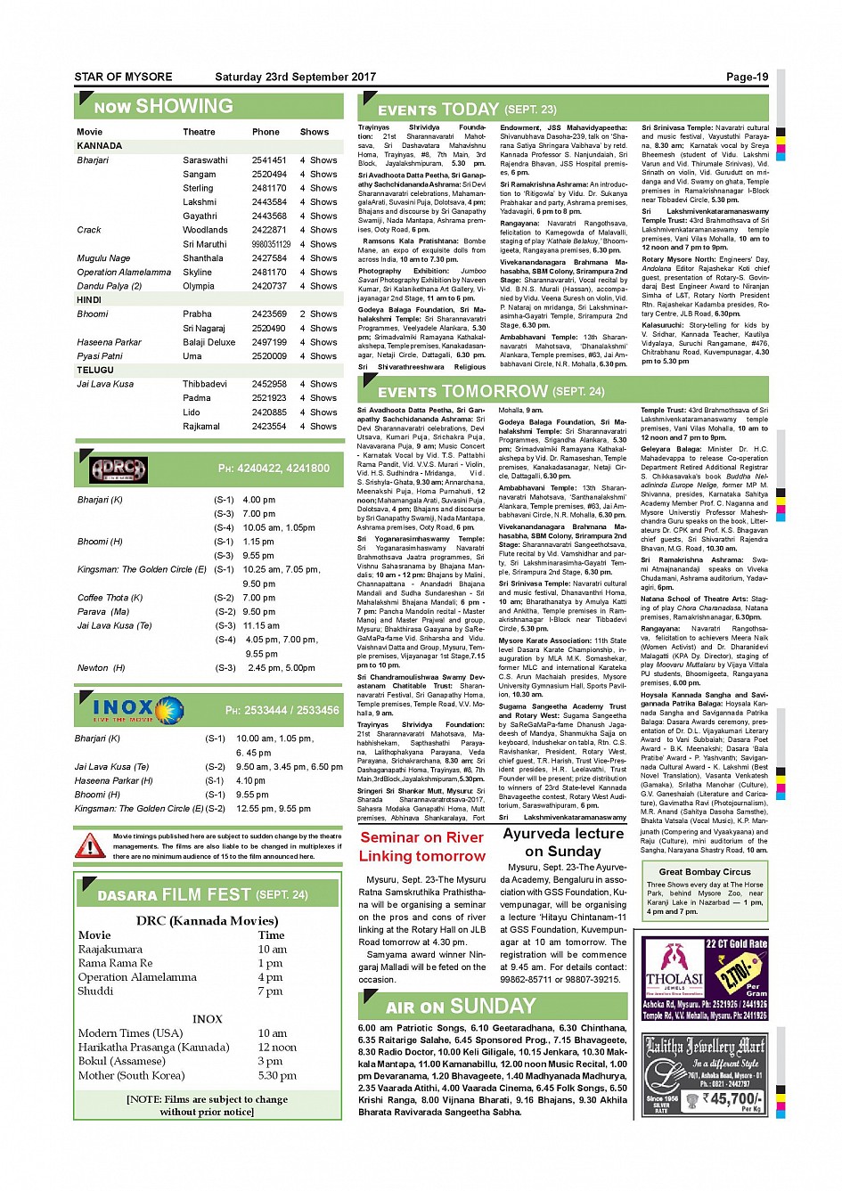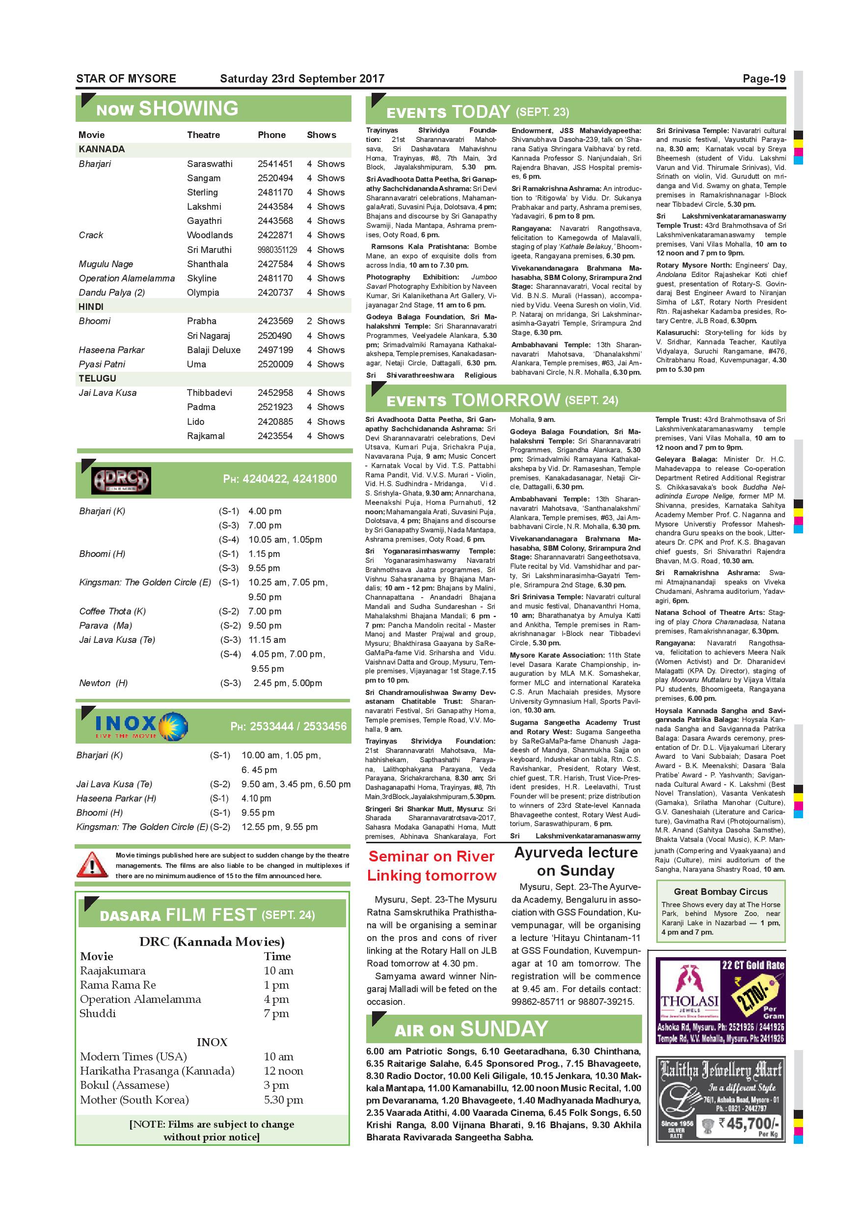 Star of Mysore Page: 18 September 23, 2017 << First << 18 >> Last >> Page 1Page 2Page 3Page 4Page 5Page 6Page 7Page 8Page 9Page 10Page 11Page 12Page 13Page 14Page 15Page 16Page 17Page 18Page 19 × Star of Mysore << First << 18 >> Last >> page-001page-002page-003page-004page-005page-006page-007page-008page-009page-010 & 011page-012page-013page-014page-015page-016page-017page-018page-019page-020 page-019