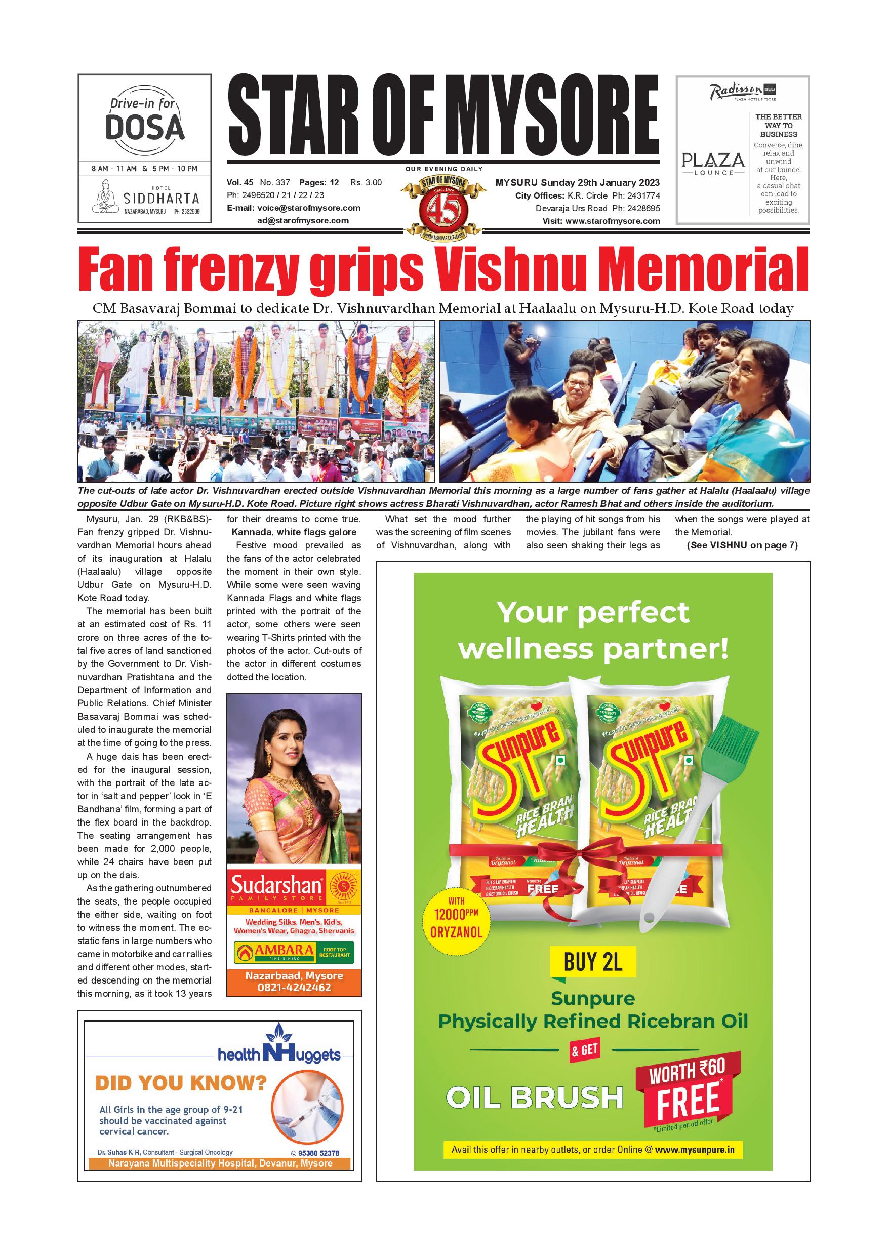 Star of Mysore January 29, 2023 << First << 1 >> Last >> Page 1Page 2Page 3Page 4Page 5Page 6Page 7Page 8Page 9Page 10Page 11Page 12 × Star of Mysore << First << 1 >> Last >> SOM-page-001SOM-page-002SOM-page-003SOM-page-004SOM-page-005SOM-page-006SOM-page-007SOM-page-008SOM-page-009SOM-page-010SOM-page-011SOM-page-012 SOM-page-001