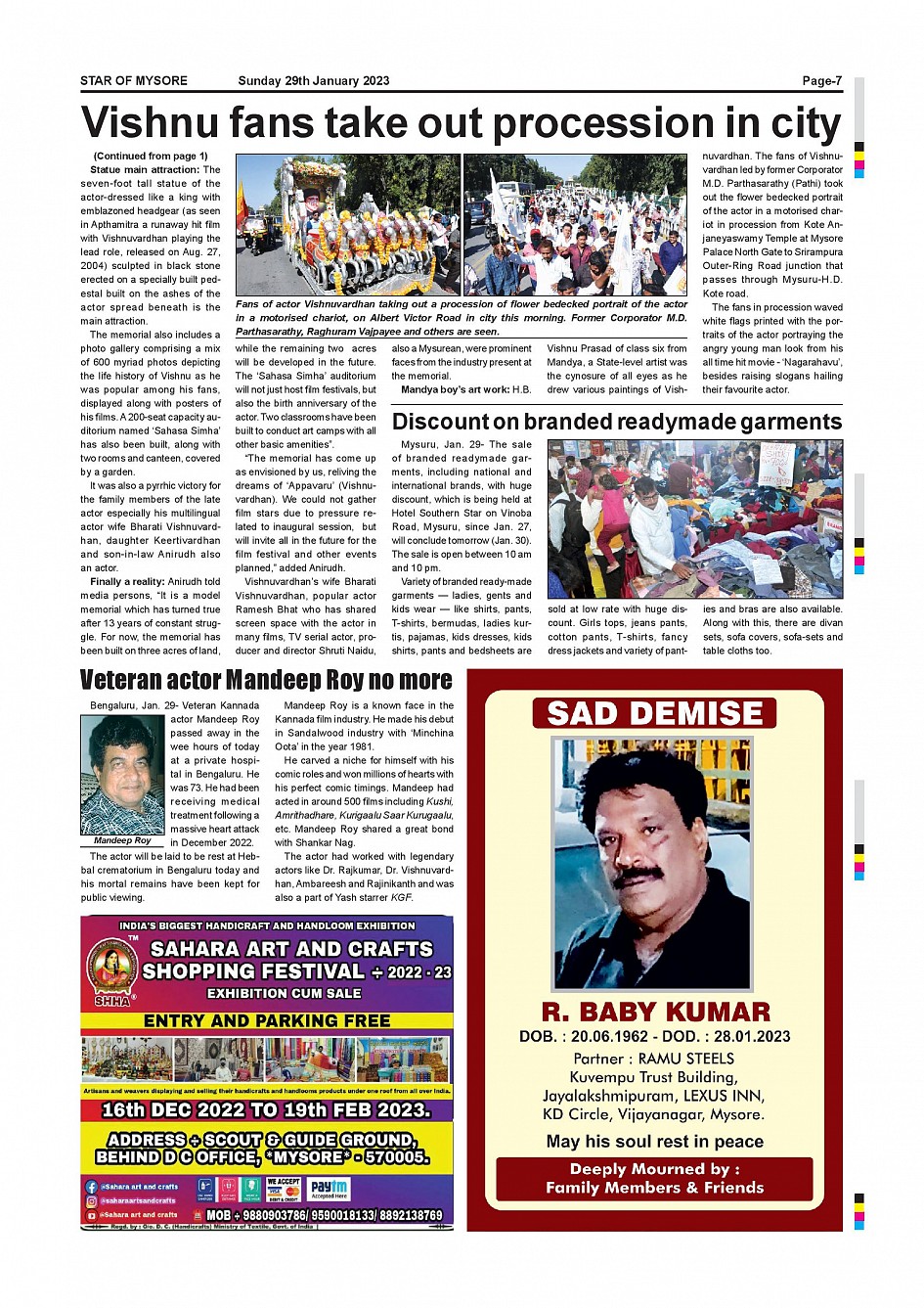 Star of Mysore Page: 7 January 29, 2023 << First << 7 >> Last >> Page 1Page 2Page 3Page 4Page 5Page 6Page 7Page 8Page 9Page 10Page 11Page 12 × Star of Mysore << First << 7 >> Last >> SOM-page-001SOM-page-002SOM-page-003SOM-page-004SOM-page-005SOM-page-006SOM-page-007SOM-page-008SOM-page-009SOM-page-010SOM-page-011SOM-page-012 SOM-page-007