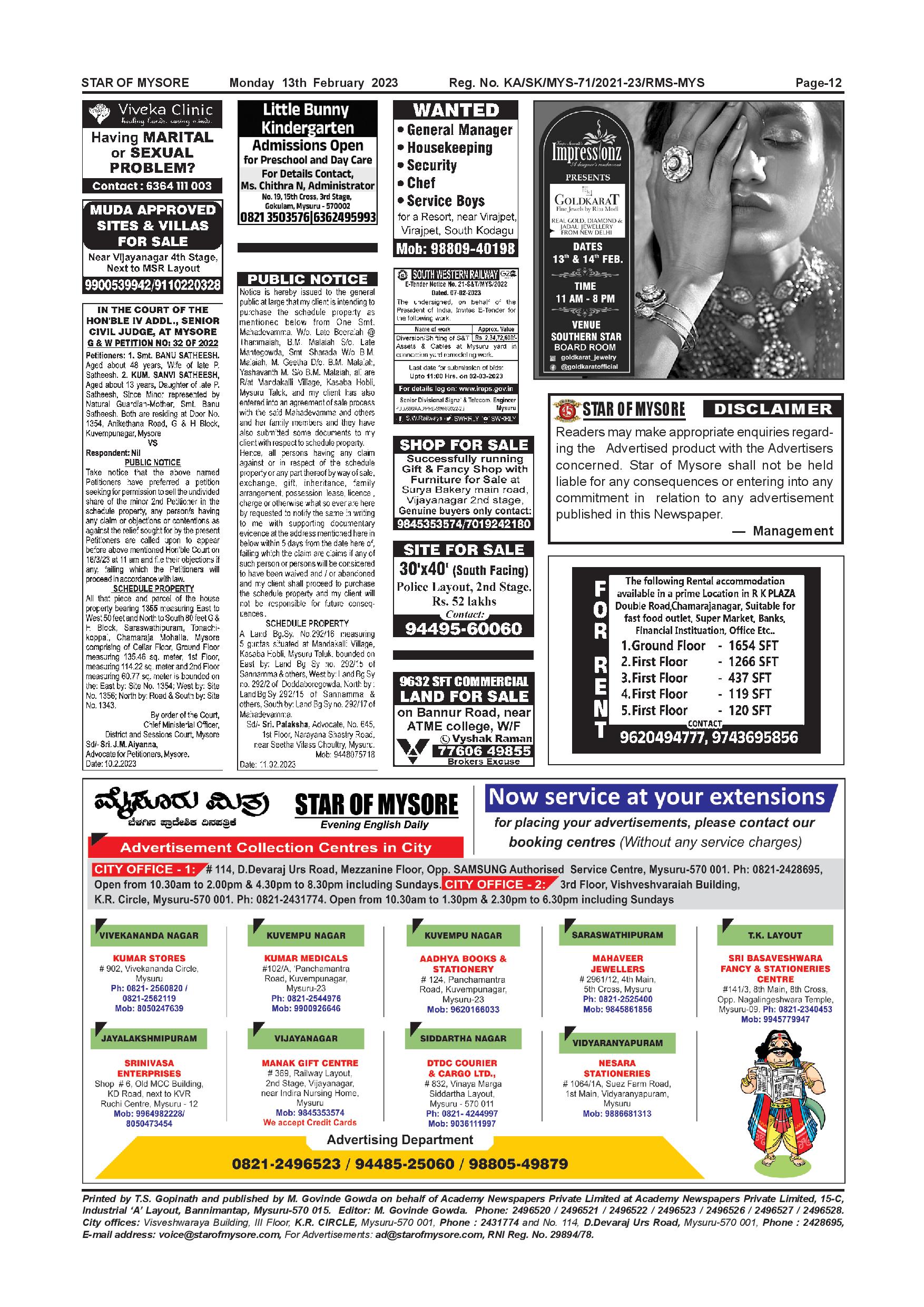 Star of Mysore Page: 11 February 13, 2023 << First << 11 >> Last >> Page 1Page 2Page 3Page 4Page 5Page 6Page 7Page 8Page 9Page 10Page 11 × Star of Mysore << First << 11 >> Last >> Page-001Page-002Page-003Page-004Page-005Page-006-007Page-008Page-009Page-010Page-011Page-012 Page-012