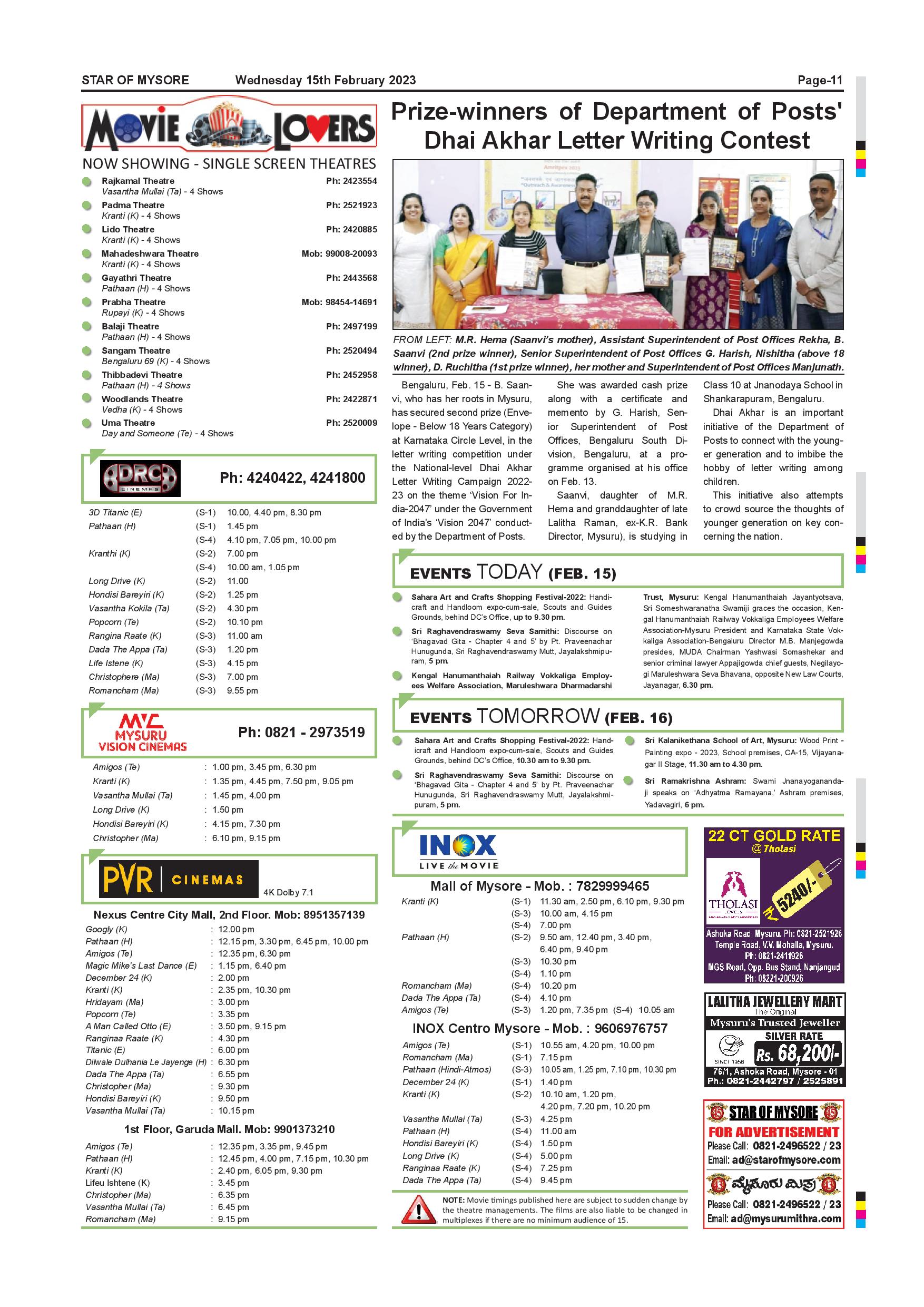 Star of Mysore Page: 11 February 15, 2023 << First << 11 >> Last >> Page 1Page 2Page 3Page 4Page 5Page 6Page 7Page 8Page 9Page 10Page 11Page 12 × Star of Mysore << First << 11 >> Last >> Page-001Page-002Page-003Page-004Page-005Page-006Page-007Page-008Page-009Page-010Page-011Page-012 Page-011