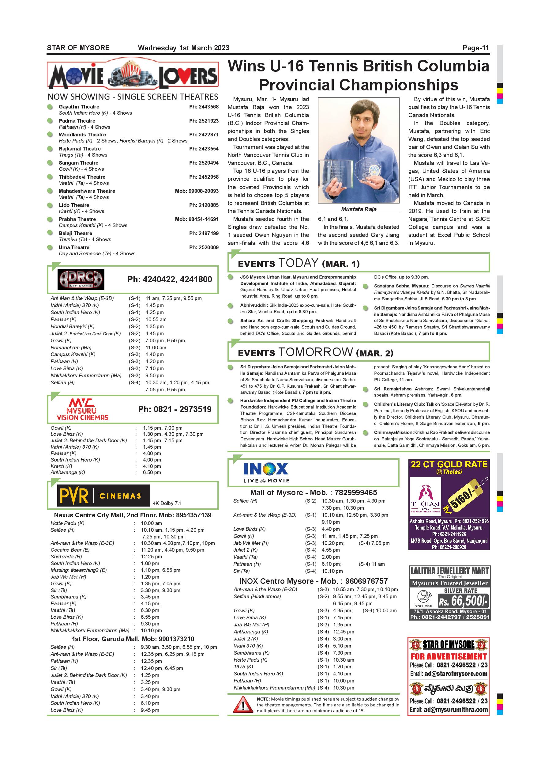 Star of Mysore Page: 11 March 01, 2023 << First << 11 >> Last >> Page 1Page 2Page 3Page 4Page 5Page 6Page 7Page 8Page 9Page 10Page 11Page 12 × Star of Mysore << First << 11 >> Last >> Page-001Page-002Page-003Page-004Page-005Page-006Page-007Page-008Page-009Page-010Page-011Page-012 Page-011