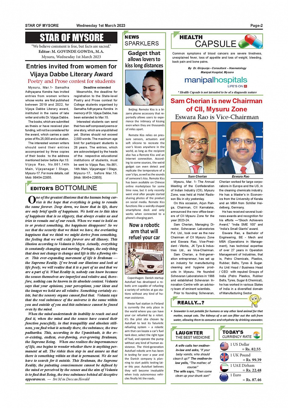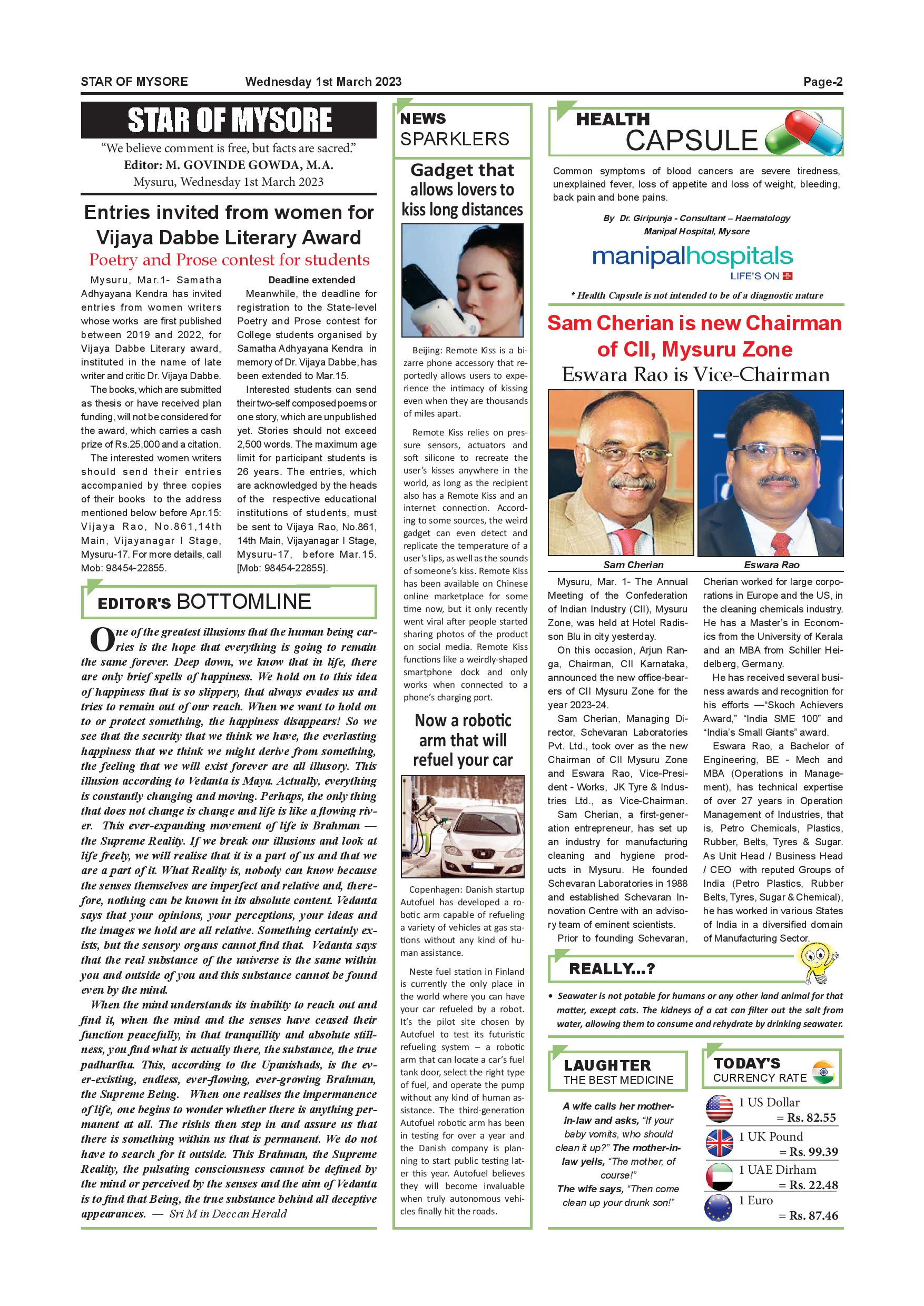 Star of Mysore Page: 2 March 01, 2023 << First << 2 >> Last >> Page 1Page 2Page 3Page 4Page 5Page 6Page 7Page 8Page 9Page 10Page 11Page 12 × Star of Mysore << First << 2 >> Last >> Page-001Page-002Page-003Page-004Page-005Page-006Page-007Page-008Page-009Page-010Page-011Page-012 Page-002