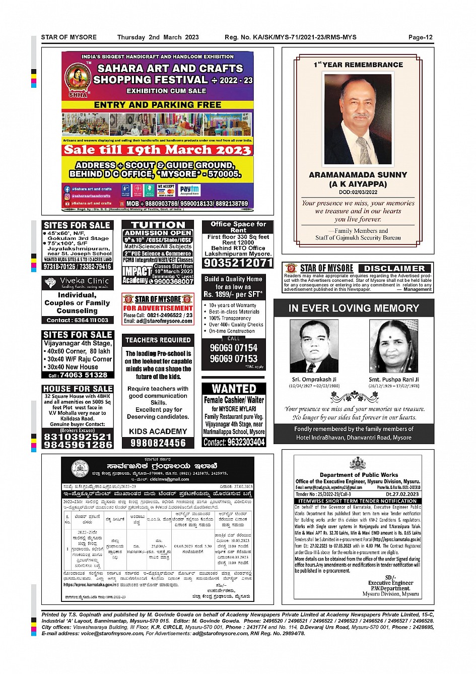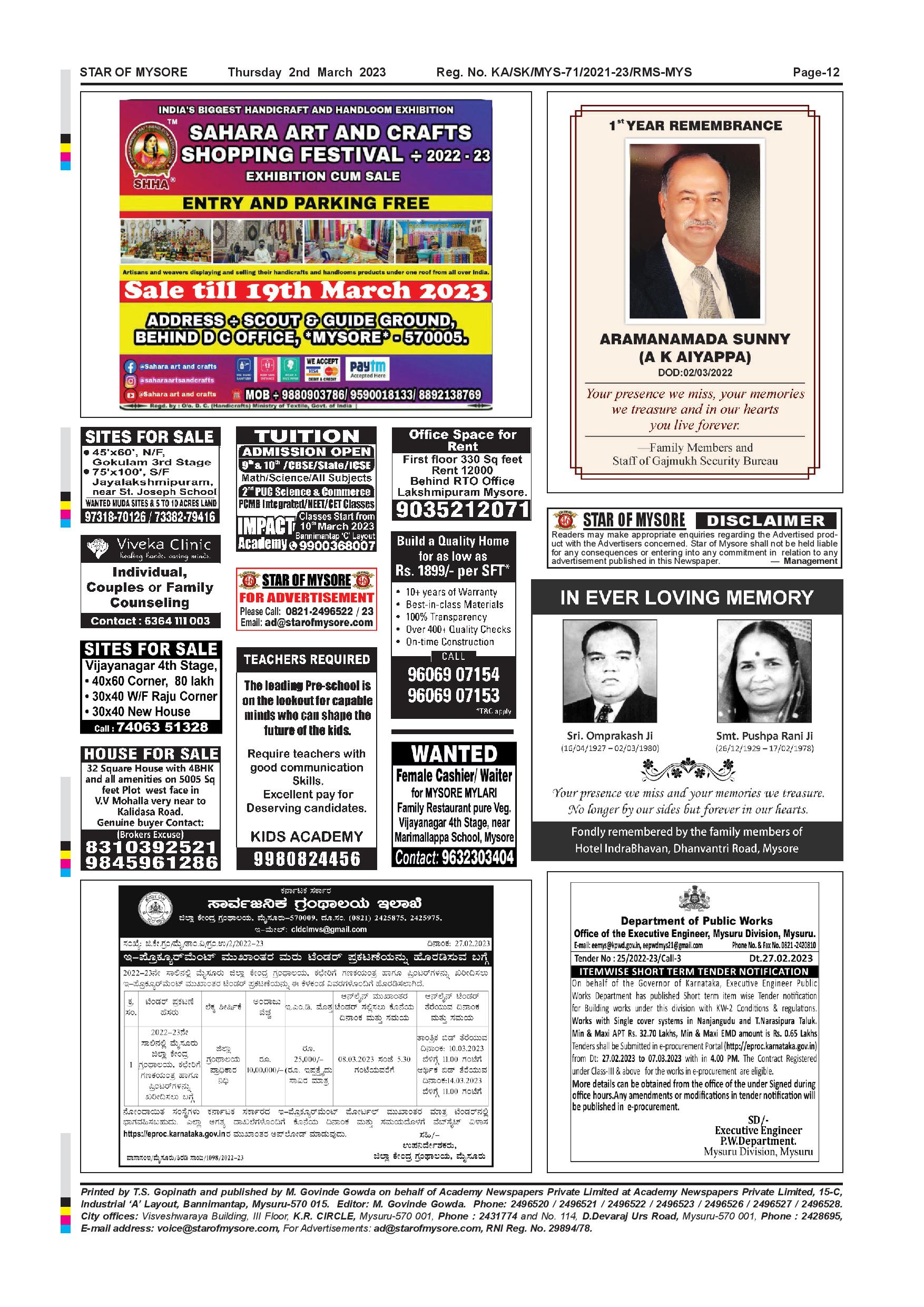 Star of Mysore Page: 12 March 02, 2023 << First << 12 >> Last >> Page 1Page 2Page 3Page 4Page 5Page 6Page 7Page 8Page 9Page 10Page 11Page 12 × Star of Mysore << First << 12 >> Last >> Page-001Page-002Page-003Page-004Page-005Page-006Page-007Page-008Page-009Page-010Page-011Page-012 Page-012