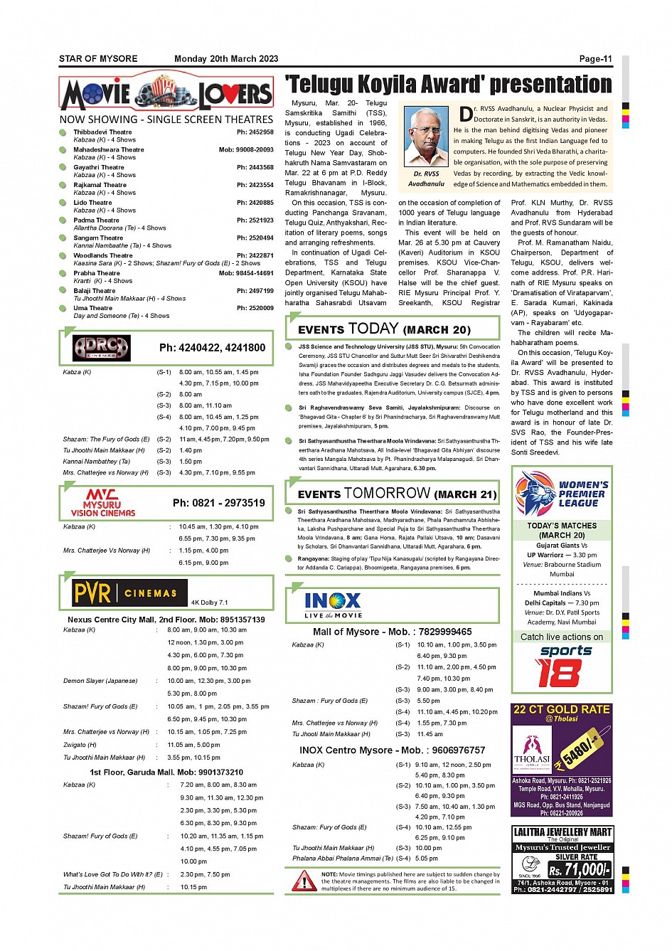 Star of Mysore Page: 11 March 20, 2023 << First << 11 >> Last >> Page 1Page 2Page 3Page 4Page 5Page 6Page 7Page 8Page 9Page 10Page 11Page 12 × Star of Mysore << First << 11 >> Last >> Page-001Page-002Page-003Page-004Page-005Page-006Page-007Page-008Page-009Page-010Page-011Page-012 Page-011
