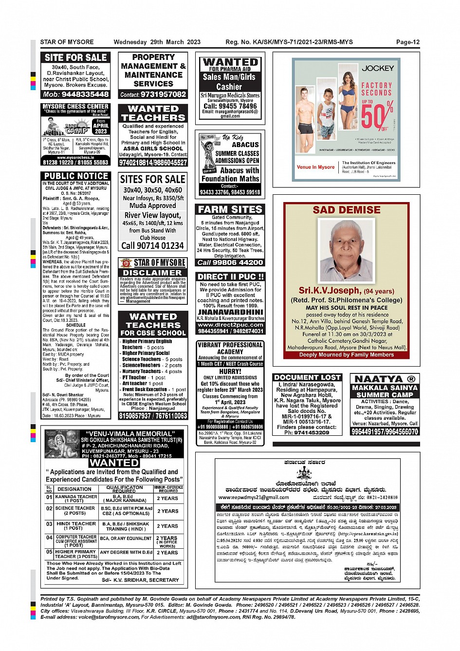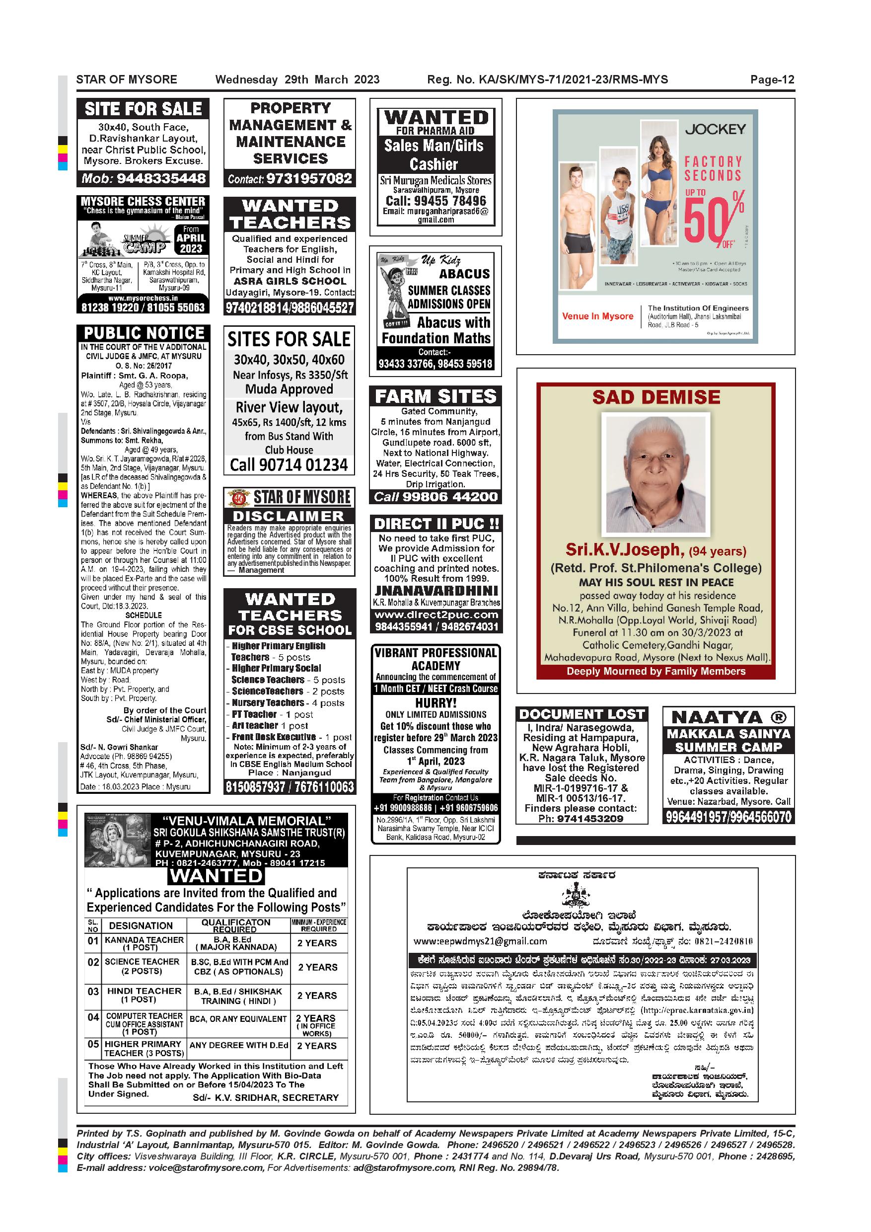 Star of Mysore Page: 12 March 29, 2023 << First << 12 >> Last >> Page 1Page 2Page 3Page 4Page 5Page 6Page 7Page 8Page 9Page 10Page 11Page 12 × Star of Mysore << First << 12 >> Last >> Page-001Page-002Page-003Page-004Page-005Page-006Page-007Page-008Page-009Page-010Page-011Page-012 Page-012