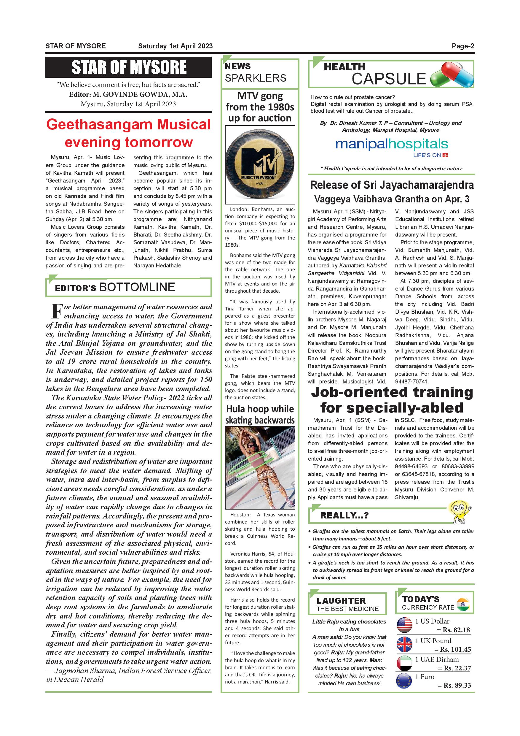 Star of Mysore Page: 2 April 01, 2023 << First << 2 >> Last >> Page 1Page 2Page 3Page 4Page 5Page 6Page 7Page 8Page 9Page 10Page 11Page 12 × Star of Mysore << First << 2 >> Last >> Page-001Page-002Page-003Page-004Page-005Page-006Page-007Page-008Page-009Page-010Page-011Page-012 Page-002