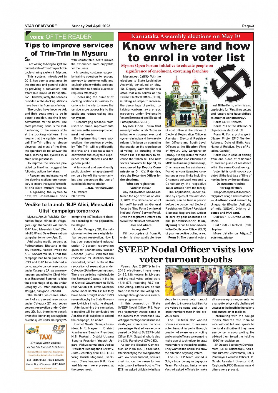 Star of Mysore Page: 3 April 02, 2023 << First << 3 >> Last >> Page 1Page 2Page 3Page 4Page 5Page 6Page 7Page 8Page 9Page 10Page 11Page 12 × Star of Mysore << First << 3 >> Last >> SOM-page-001SOM-page-002SOM-page-003SOM-page-004SOM-page-005SOM-page-006SOM-page-007SOM-page-008SOM-page-009SOM-page-010SOM-page-011SOM-page-012 SOM-page-003