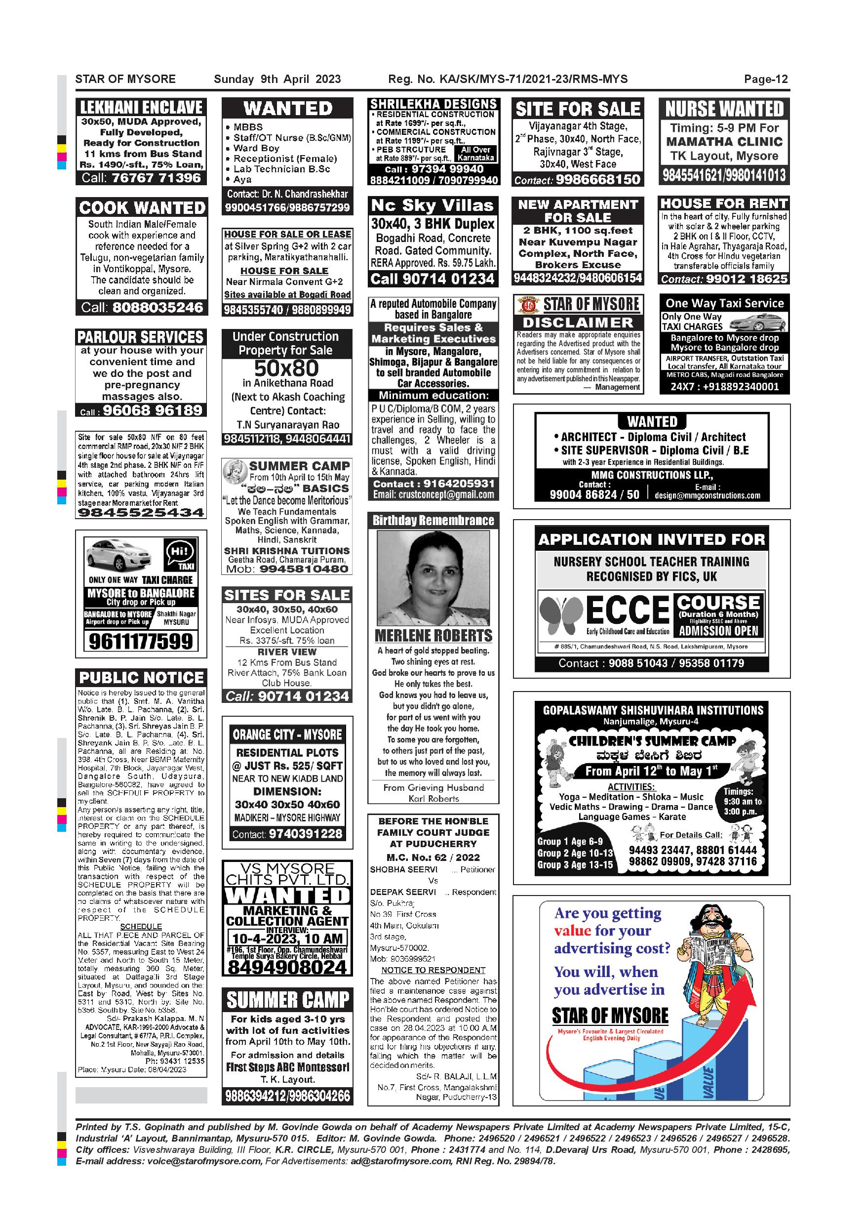 Star of Mysore Page: 12 April 09, 2023 << First << 12 >> Last >> Page 1Page 2Page 3Page 4Page 5Page 6Page 7Page 8Page 9Page 10Page 11Page 12 × Star of Mysore << First << 12 >> Last >> Page-001Page-002Page-003Page-004Page-005Page-006Page-007Page-008Page-009Page-010Page-011Page-012 Page-012