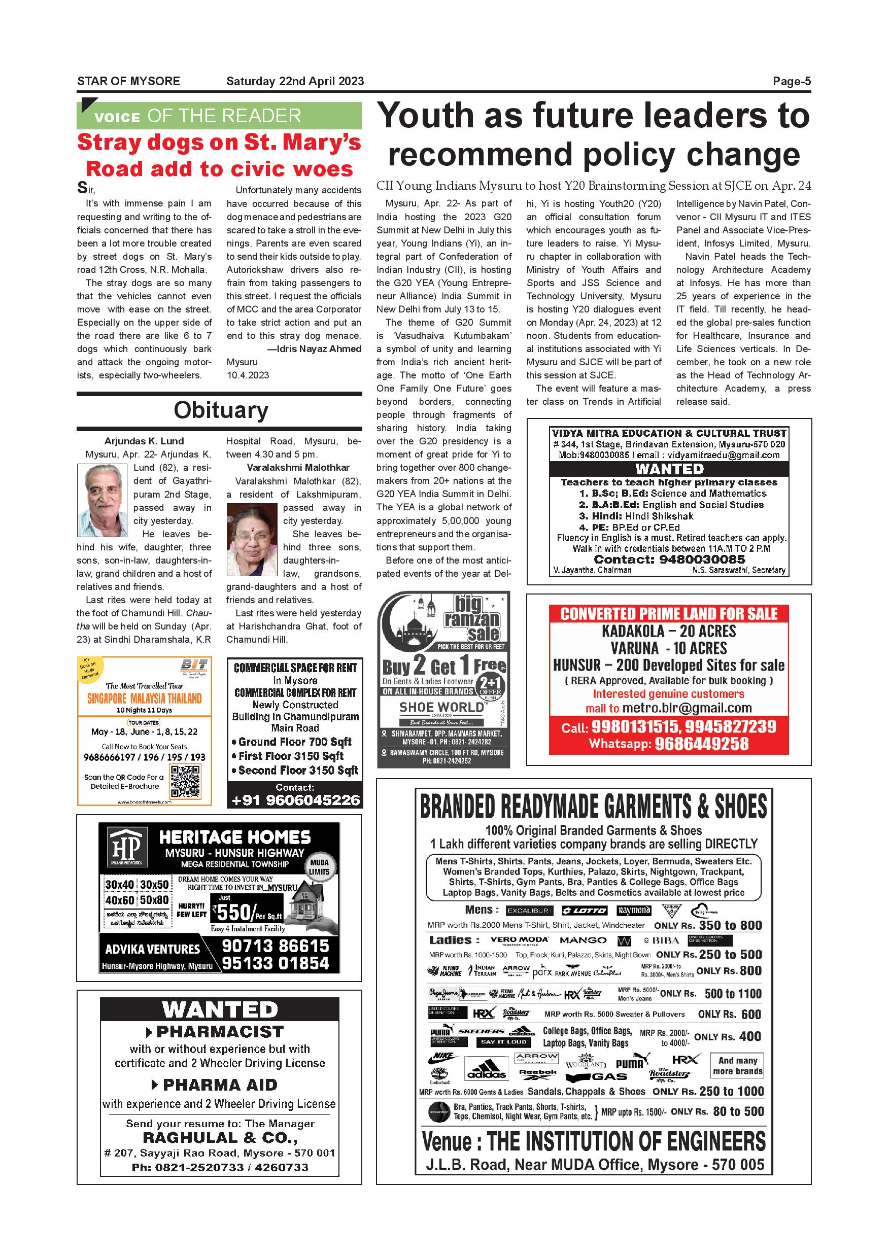 Star of Mysore Page: 5 April 22, 2023 << First << 5 >> Last >> Page 1Page 2Page 3Page 4Page 5Page 6Page 7Page 8Page 9Page 10Page 11Page 12Page 13Page 14Page 15Page 16 × Star of Mysore << First << 5 >> Last >> Page-001Page-002Page-003Page-004Page-005Page-006Page-007Page-008Page-009Page-010Page-011Page-012Page-013Page-014Page-015Page-016 Page-005