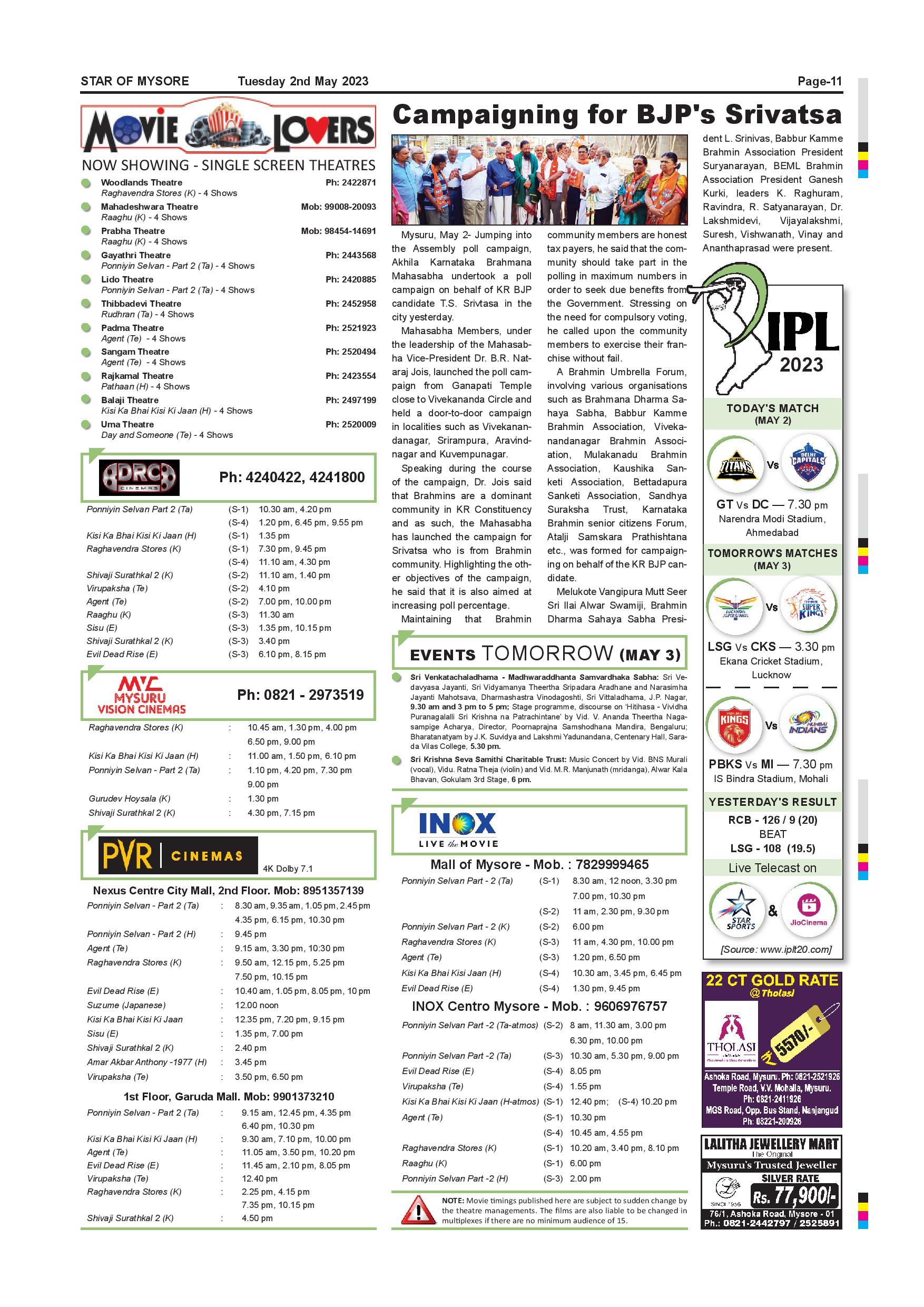 Star of Mysore Page: 11 May 02, 2023 << First << 11 >> Last >> Page 1Page 2Page 3Page 4Page 5Page 6Page 7Page 8Page 9Page 10Page 11Page 12 × Star of Mysore << First << 11 >> Last >> SOM-page-001SOM-page-002SOM-page-003SOM-page-004SOM-page-005SOM-page-006SOM-page-007SOM-page-008SOM-page-009SOM-page-010SOM-page-011SOM-page-012 SOM-page-011