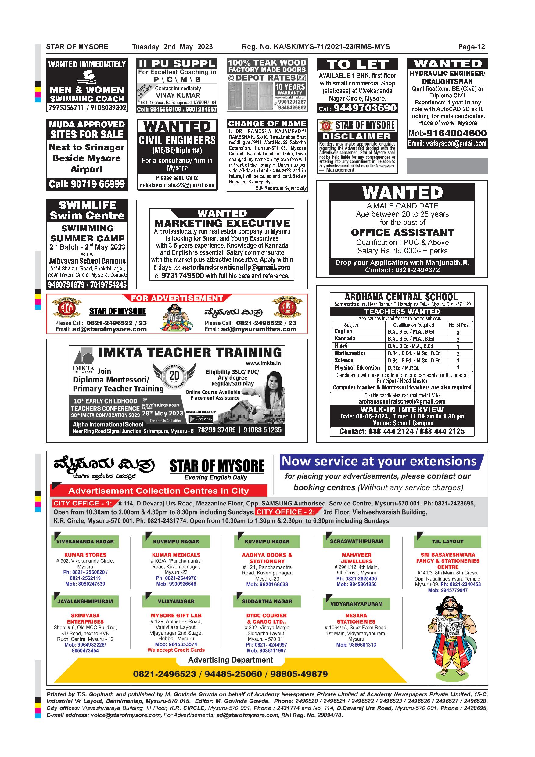 Star of Mysore Page: 12 May 02, 2023 << First << 12 >> Last >> Page 1Page 2Page 3Page 4Page 5Page 6Page 7Page 8Page 9Page 10Page 11Page 12 × Star of Mysore << First << 12 >> Last >> SOM-page-001SOM-page-002SOM-page-003SOM-page-004SOM-page-005SOM-page-006SOM-page-007SOM-page-008SOM-page-009SOM-page-010SOM-page-011SOM-page-012 SOM-page-012