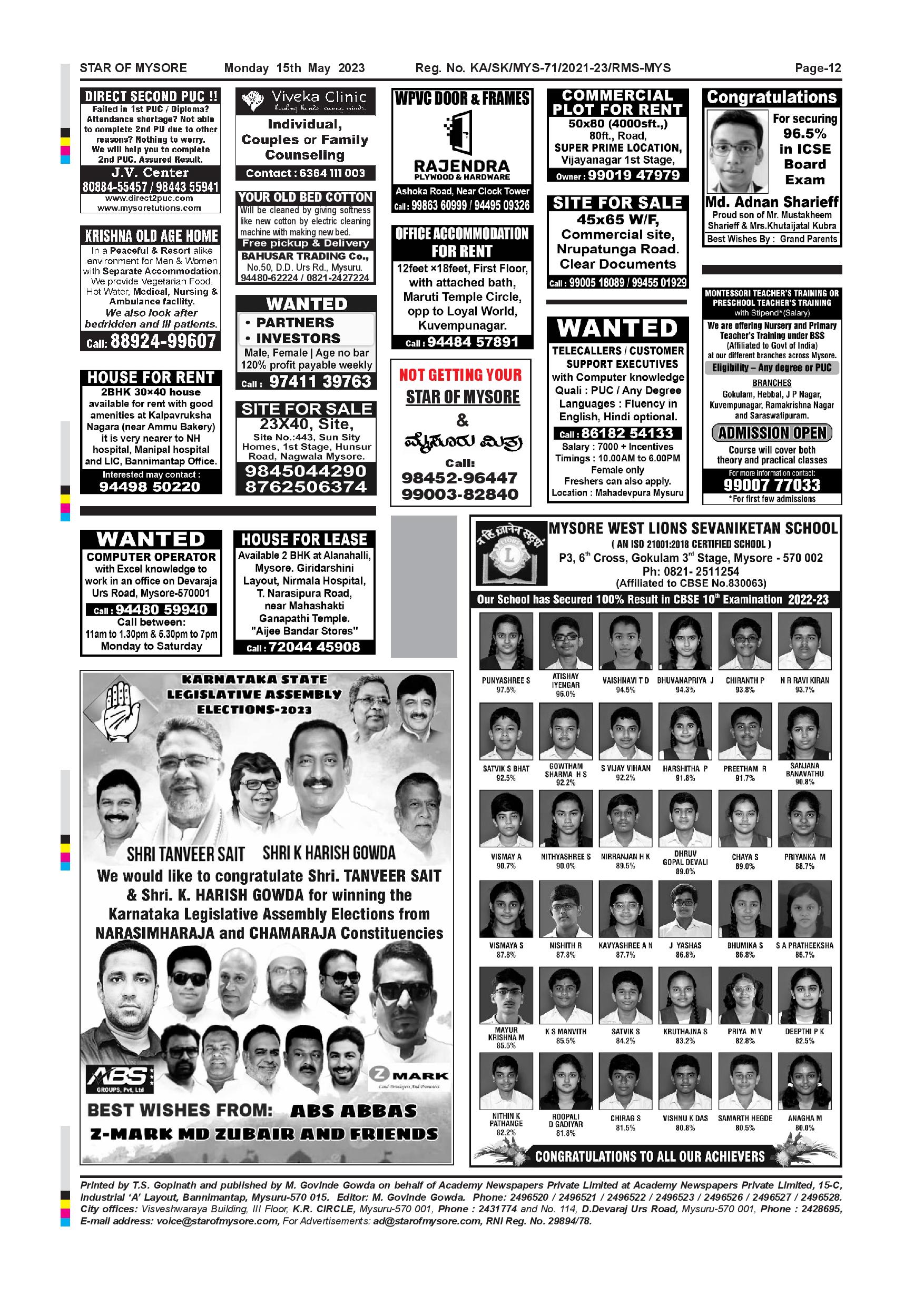 Star of Mysore Page: 12 May 15, 2023 << First << 12 >> Last >> Page 1Page 2Page 3Page 4Page 5Page 6Page 7Page 8Page 9Page 10Page 11Page 12 × Star of Mysore << First << 12 >> Last >> Page-001Page-002Page-003Page-004Page-005Page-006Page-007Page-008Page-009Page-010Page-011Page-012 Page-012